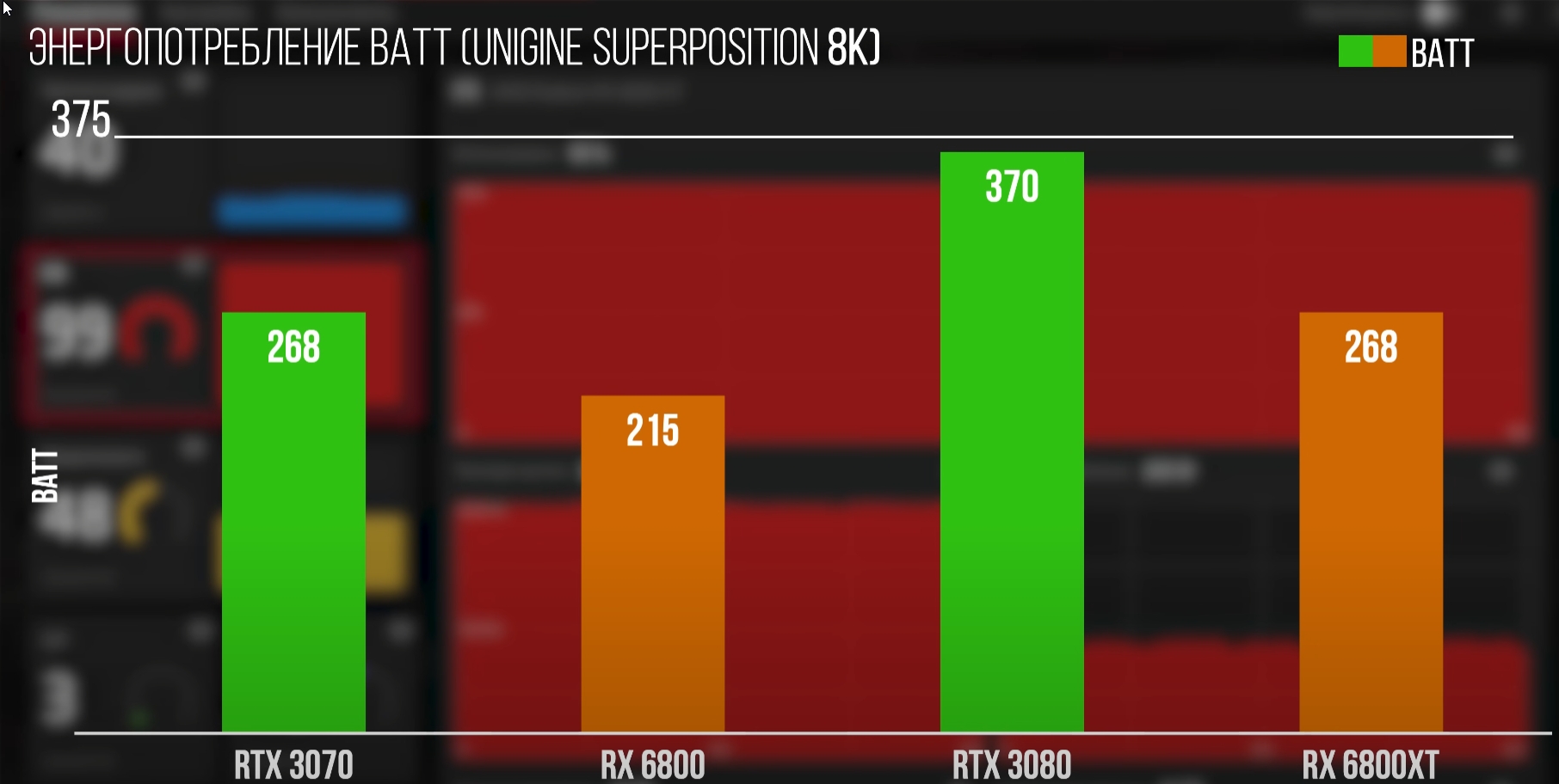 James_on мониторинг AMD не выводит полного энергопотребления видеокарты, в отличие от видеокарт Nvidia. Для референсов видеокарт AMD энергопотребление видеокарты можно увидеть на сайте, но для нерефов только измерение отдельно. Вот вам пример 6900 XT на стоковом BIOS с полным энергопотреблением 300 Вт как и на 6800 XT.