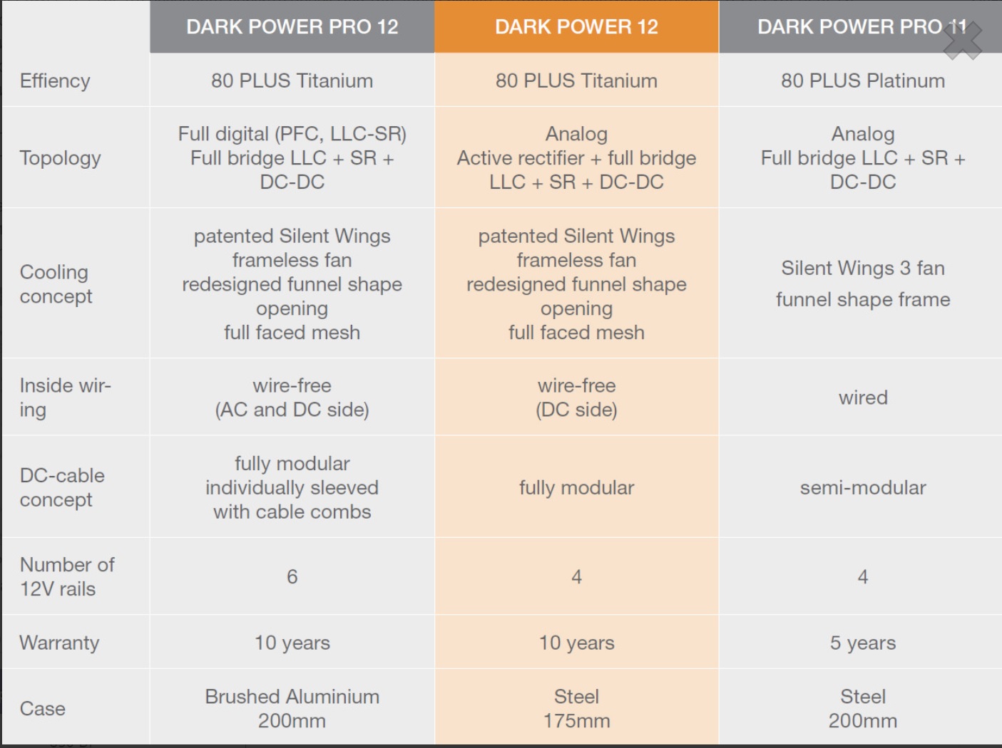 Технологии и защиты в блоках питания: OCP - Защита от перегрузок по току OTP - Защита от перегрева SCP - Защита от короткого замыкания OVP - Защита от повышения напряжения OPP/OLP - Защита от перегрузки силами микроконтроллера PWM UVP - Защита от понижения напряжения SIP - Защита от бросков напряжения\тока NLP – Возможность работы с нулевой нагрузкой