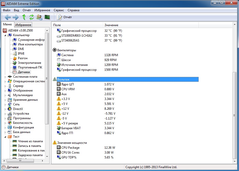 Просто буквально вчера на старом компе показывал этот БП значения в пределах нормы.
