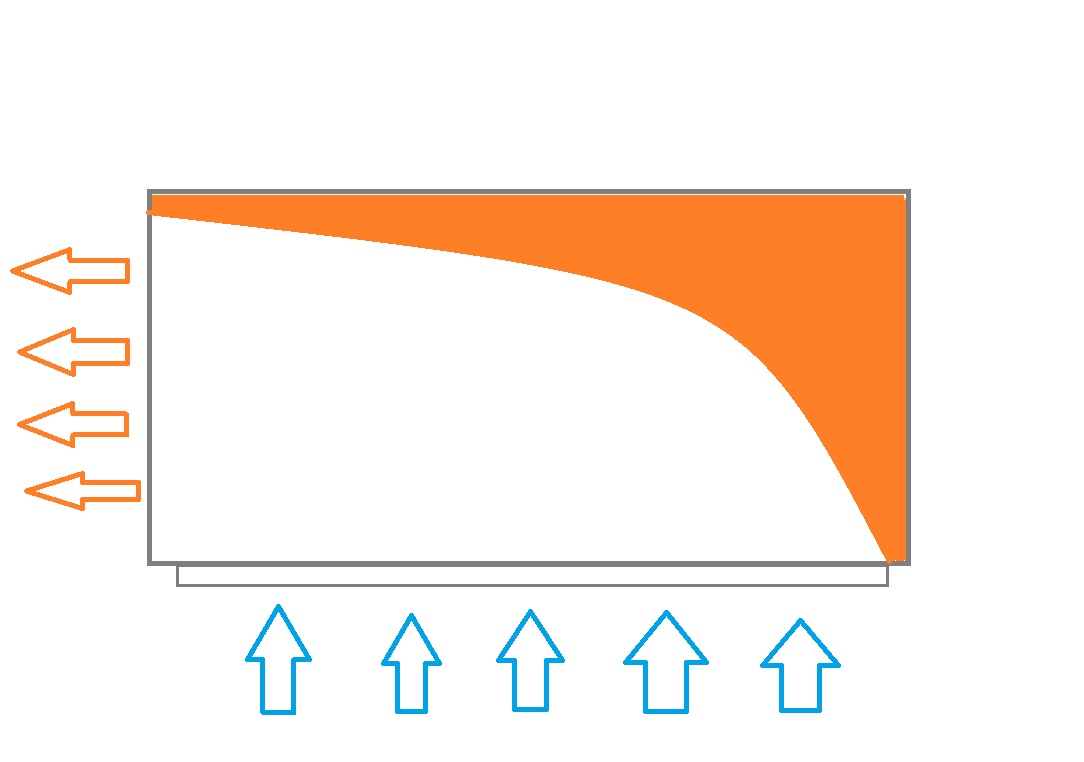 внутри БП образуется мертвая непродуваемая зона, в которой застаивается теплый воздух