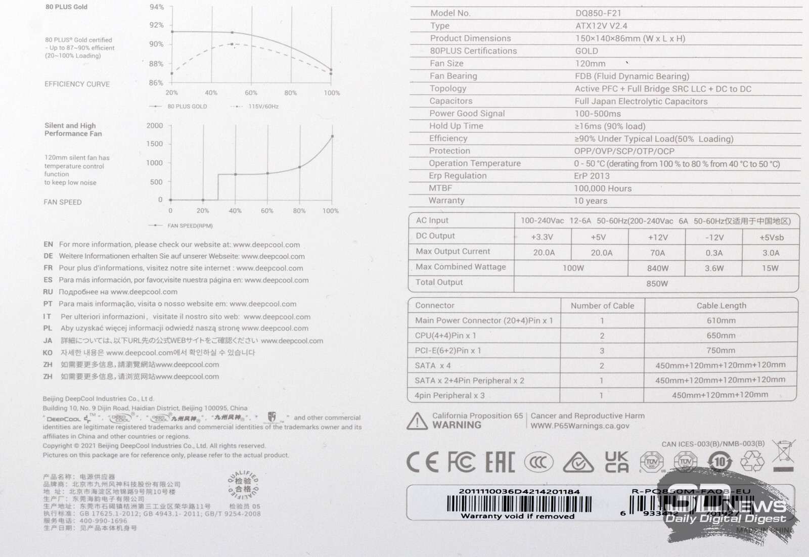 Ты какие-то сказки рассказываешь. https://www.deepcool.com/products/Power ... 4032.shtml Все те же самые защиты заявлены. Кибенетик тоже все эти же самые защиты указывает на обоих блоках, разве что они там термозащиту ни в одном из случаев не указывают. По начинке все тоже самое, ничего не удешевлено. А по поводу 18awg вместо 16awg - ну тут обрати внимание, что у дипкула на проводах нет ответвителей. Да, майнеры будут опечалены таким удешевлением проводов, но для подключения одной видеокарты - это не имеет совершенно никакого значения, для 150Вт на провод такого калибра более чем достаточно.