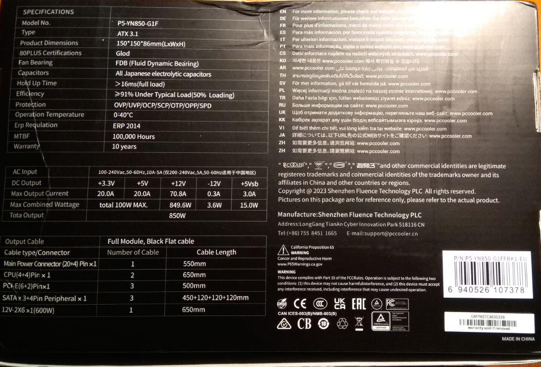 Про конкретно PCCOOLER сказать не могу, но на заводской (не на внешней транспортировочной) упаковке с БП Seasonic имеется вся информация про изделие, включая полное наименование, и штрих-коды. И если покупатель знает куда смотреть, и читает все коды, он получит информацию о БП.