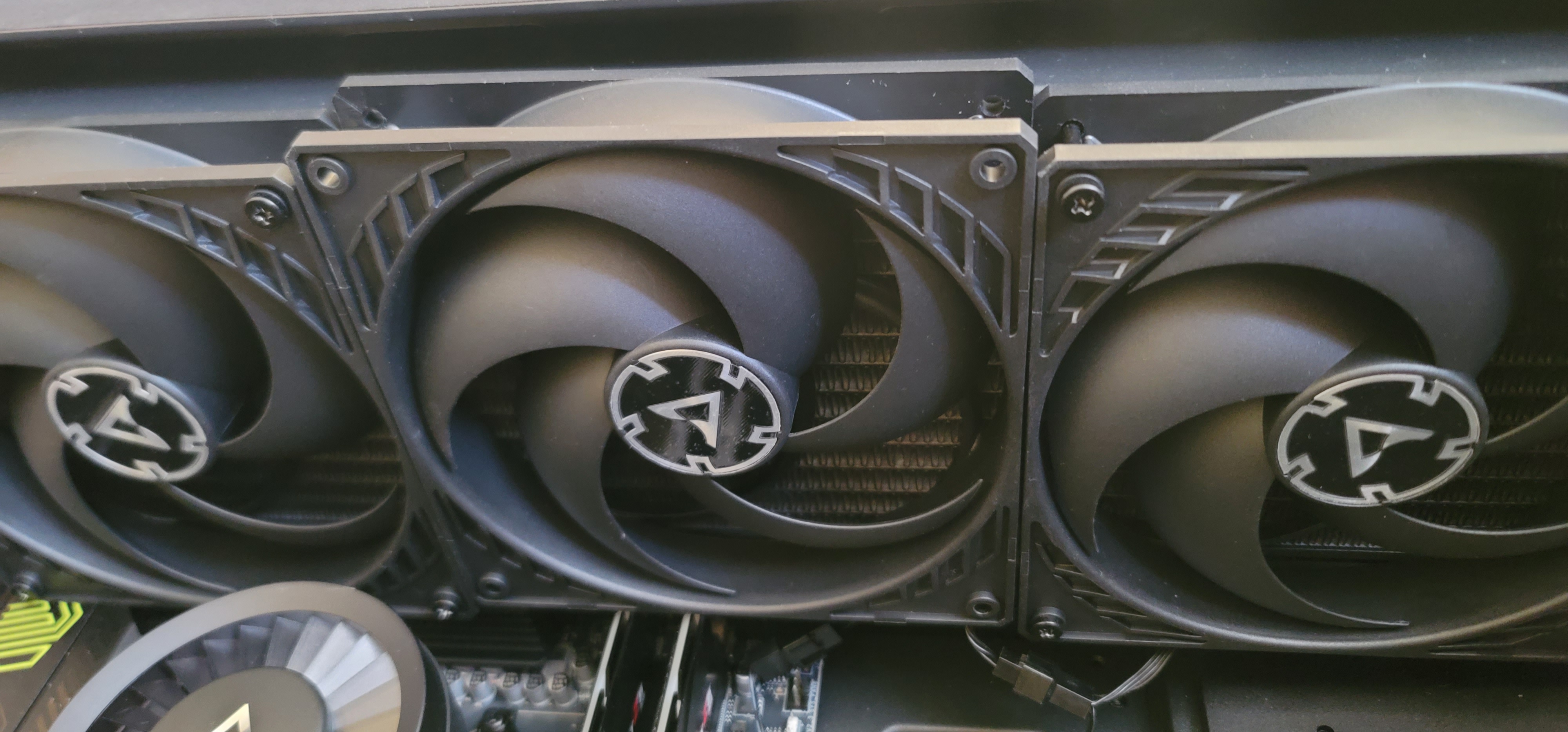 Добавлено спустя 1 минуту 43 секунды: В enthoo PRO 2 arctic 420 3 влез только сверху. (Средний вентилятор или снять или заменить на 120. Не рассчитал с высотой памяти..)