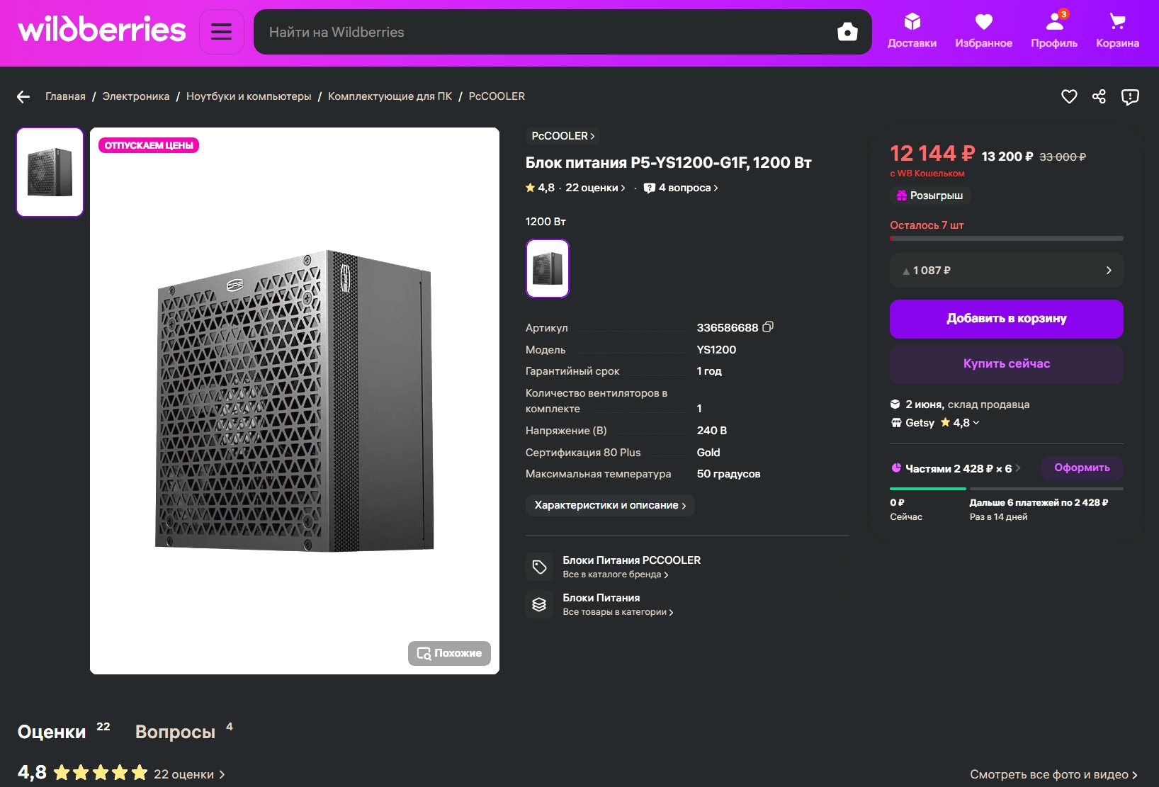 ок , хочу 850 ватт взять или 1квт , я так понял 1квт-1.2квт начинка отличается от 850ватт бп? на ягодах 13200 Getsy #77 подорожал твой жирный зашёл в профиль с wb кошельком 12 275 ₽