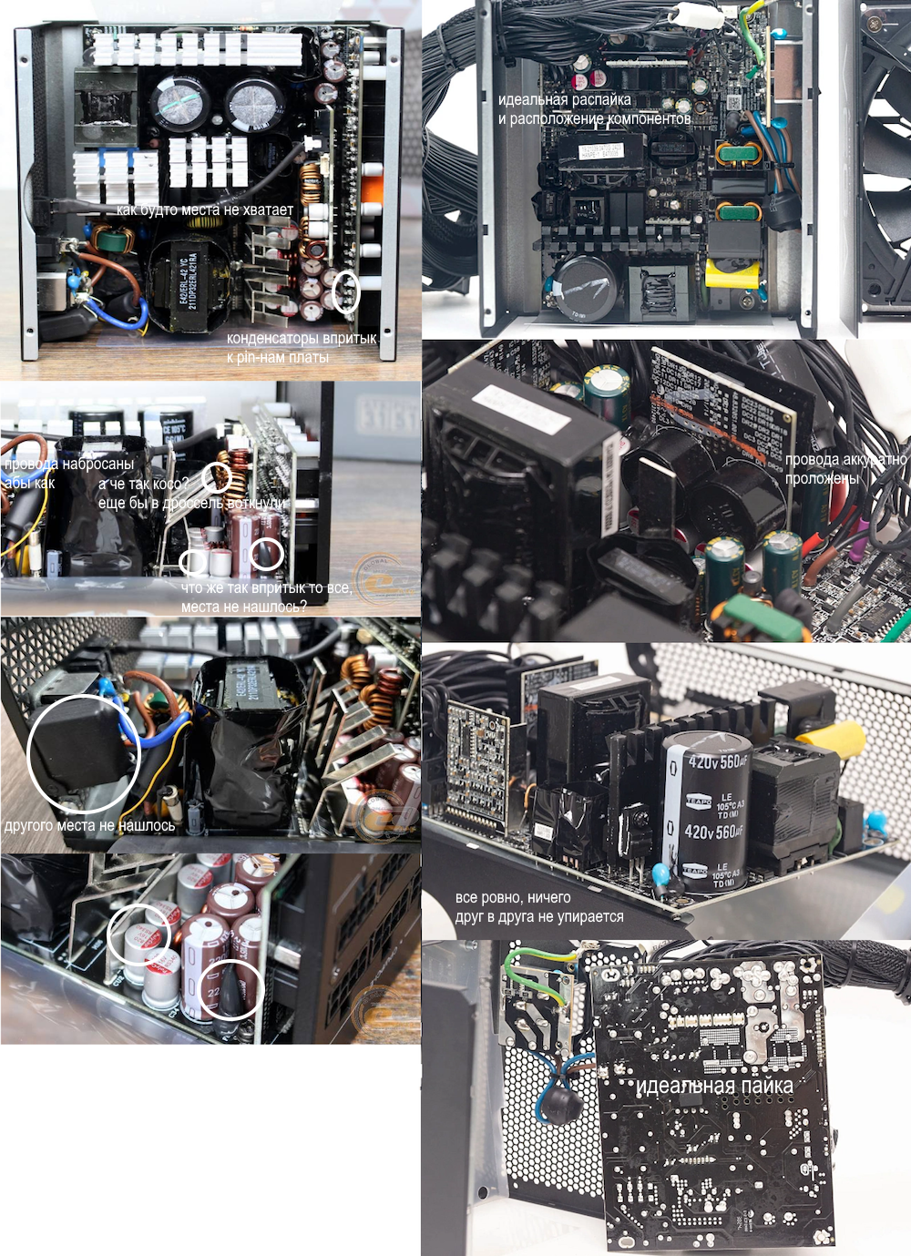 На потроха смотрел при замене вентиля, в комплектухе особо не копенгаген, но сделано аккуратно, в т.ч. пайка. Ограничитель потока прикручен через металл. шайбы, что вообще первый раз видел. Проблема бывает в вентиляторе, у меня стрекотал и вечером в тишине на открытом стенде это слышно. Еще видел отзывы на кривой пластик мама-разъемов в блоке. Да и пластик кривит потому-что относительно мягкие разъемы, что по мне плюс, т.к. вынимаются штекеры довольно легко, в отличие от MONTECH CENTURY 550 к примеру, у которого вытащить 24пин колодку из материнки целый квест из-за очень жесткого пластика разъемов. Реально страшно повредить текстолит, приходится шлицевой отверткой помогать.