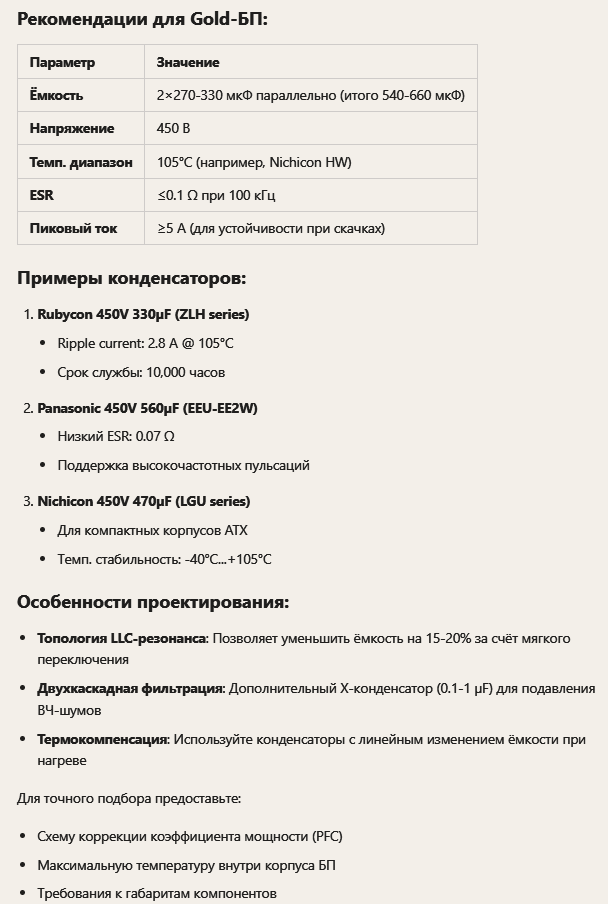 Bigsun а про емкость второстепенно, речь о производителе конденсаторов. никто не говорит что Chieftec Vega M PPG-850-C плохой БП, просто не нужно "возносить" его выше других БП которые лучше по параметрам, лучше внутрянка, конденсаторы. а то что собран кривовато, может экземпляр такой.. и не нужно пытаться найти оправдания почему вы купили дешевле, во всех без исключения случаях - это просто желание сэкономить, дешевле не может быть лучше. максимум не хуже.