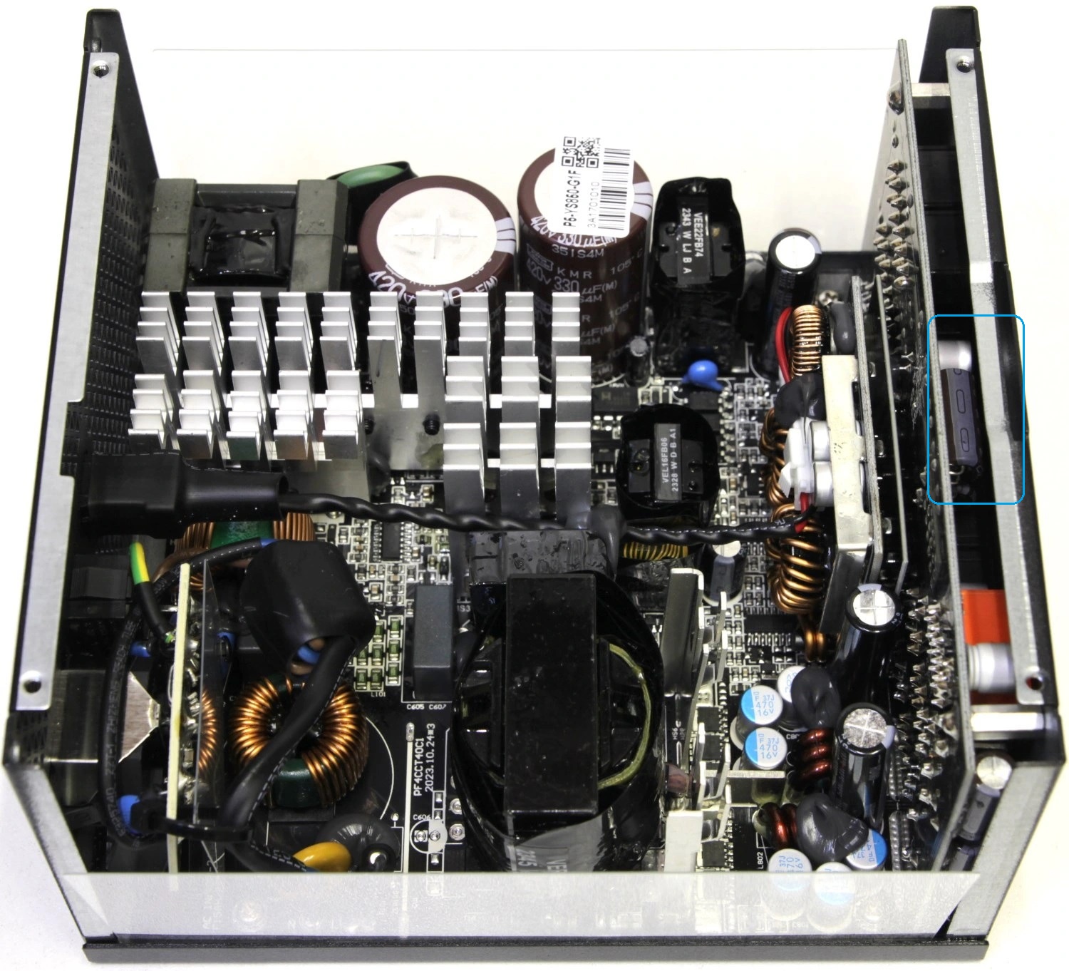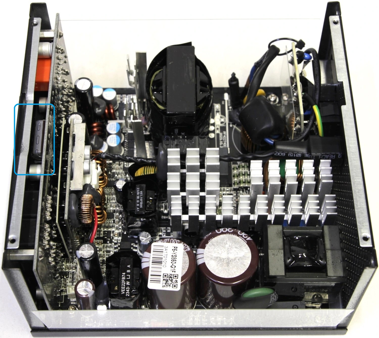 Выходной фильтр больше соответствует качественному БП ATX 2.x. То есть, взяли какую-то платформу БП десятилетней давности уровня сертификата ATX12V v2.х и разогнали её до 3.1.