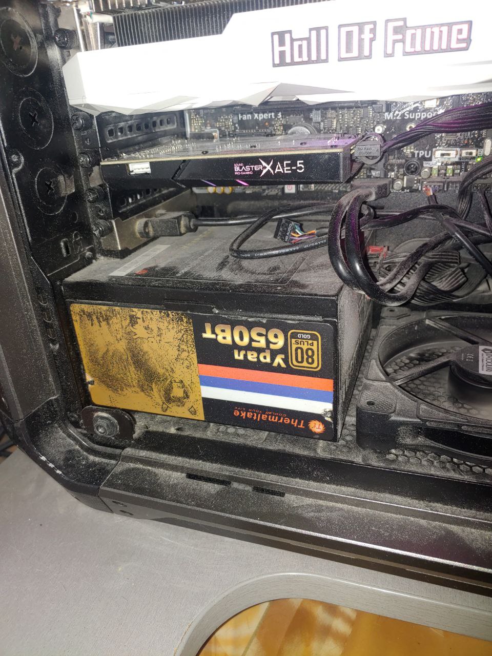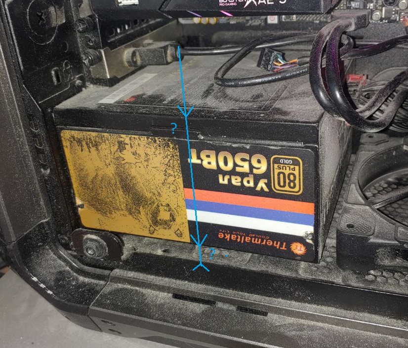 Ну так замеряй текущий, смотри сколько новый и влезет ли он. Видишь же что у тебя сейчас в упор у задней стенки под креплениями для плат расширения? Вот надо глянуть как там решётка радиатора, на весь БП или только часть. +у тебя какой-то подъём для него внизу есть, зачем он? Если убирается, то можно будет убрать, если он тогда не прикрепится к задней стенке - мимо. Ну и заодно пыль протри, что ли... я не ОКРщик который не может на неё смотреть, у самого стол вечно пыльный, но тут уж очень жалко комп стало.