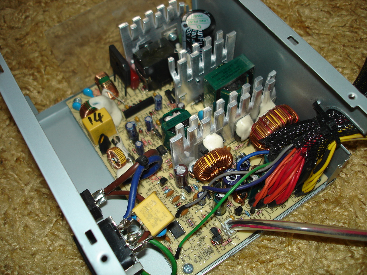 Приветствую! Да, один в один! Так там ещё и на выходных ВСЕ JunFu стоят! Дежурку только не понял. Жесть! И у этого БП заявлено 408 ватт на 12в линии(входная банка кажет, что это гон). При нагрузке до 200 ватт воет как самолёт и напруга на 12 вольтовой линии пляшет от 11,71 до 12,1(замер мультиметром). Причём пляшет за секунду в таком диапазоне! Надо нахрен менять. Даже FSP понтовее внутри сделан (450pnr).