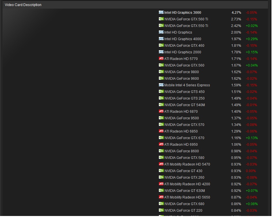 смотри: 660 0.71% 284000 7850 0.76% 304000 660ti 0.77% 308000 7870 0.5% 200000 670 1.16% 464000 7950 меньше 0.5 <200000 680 0.86% 344000 7970 вместе с ggh даже меньше 0.5% <200000 итого 1400000против 900000 скорее всего меньше p.s low не включил в список