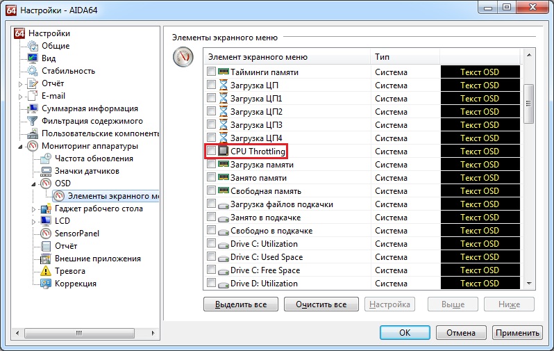 пункт Hardware Monitoring добавлен новый пункт: CPU Throttling;