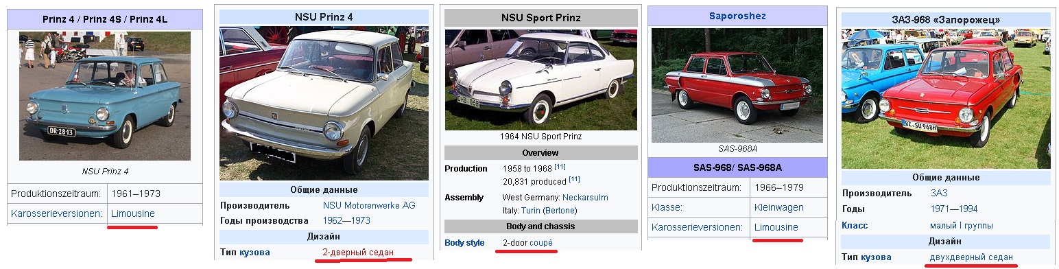 Так среди SUV или кроссоверов воткнули давно известное со времён гужевых карет названные "coupe" (BMW X6, его назвали "coupe" маркетологи завода BMW). Хотя раньше со времён карет традиционно под "купе" подразумевался закрытый кузов, который в отличие от "седана" имел всего 2 двери. Хуже того, если проверить по "Google Translate" набрав по английски "coupe", - и получите на рус. яз. объяснение "двухместная карета, двухместное купе". В CCСР в технической литературе синонимом "купе" была фраза "двухдверный седан". Прикольно, тогда по старой советской терминологии логично бы назвать BMW X6 "двухдверным седаном". (Маркетологи BMW ошиблись в счёте.) Проскакивало даже определиние что "купе" - это двухдверный "хэтчбэк" с тесным интерьером, часто спортивный или псевдо-спортивный автомобиль. Короче, во всей кузовной терминологии - пока ещё воля вольная.