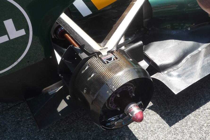 Поэтому на RB7 отверстие для подключения стартера фактически не используется в аэродинамических целях. И тогда в Red Bull придумали вот что: в днище были проделаны отверстия, благодаря которым воздух из зоны высокого давления перед диффузором проходит через маленькие трубочки, проложенные через отверстие для стартера, что даёт небольшой дополнительный аэродинамический эффект в этой области машины.