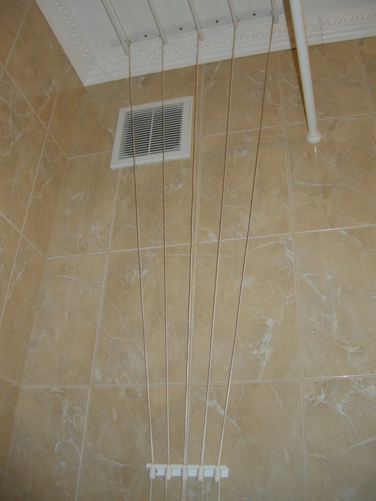 BSD Висит сушилка, ага. Ток не над ванной ибо часто бывает, что моешься когда белье еще сушиться параллельно ( ну во всяком случае висит ) А зачем веревки спущены? Чтоб снимать белье?
