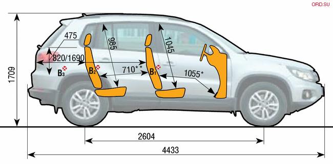 Я же тебе кидал картинку - http://www.off-road-drive.ru/fi/15/tops/VW_Tiguan_1.jpg (это реальные замеры, которые были проверены форумчанами с рулеткой). Если не веришь, могу те сам замерить) Вот и сравнивай со своей. Потолок ниже в мокке, места для ног в длину меньше. Короче, уже (жаль нет замеров ширины салона), легче.
