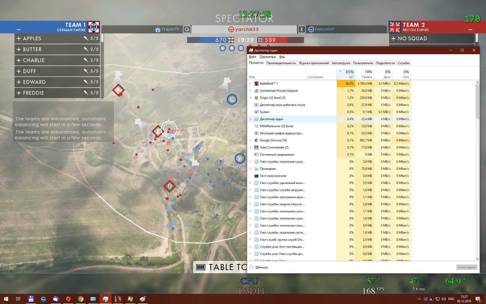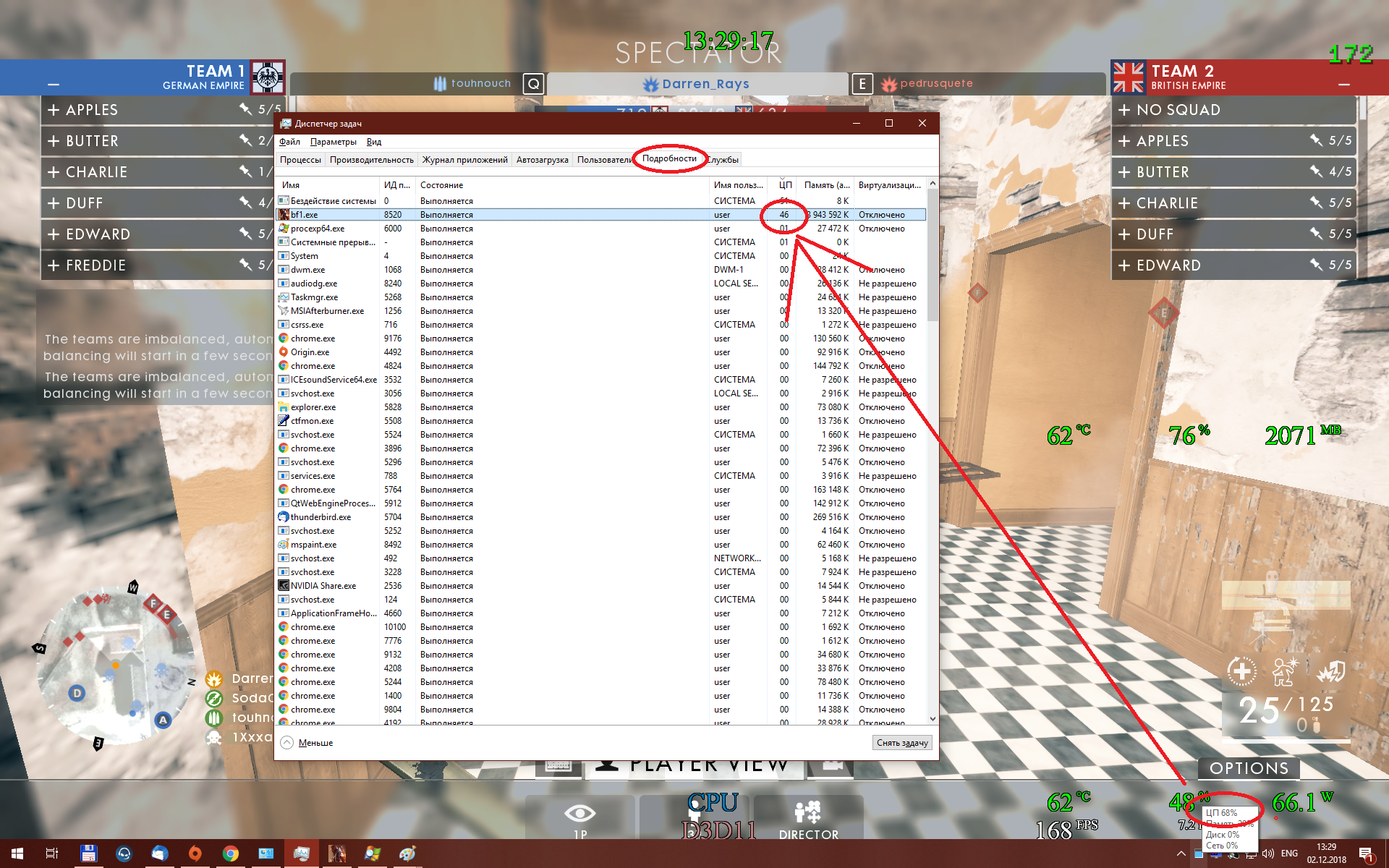 N1ghtwish ты имеешь 6/12 процессор, как ты вообще на нем будешь считать количество потоков больше 6? Hyper-Threading будешь задействовать в расчет? Который только сбивает с толку, т.к. добавляет рандомные проценты к загрузке. Правильный метод только такой: 1) Мощный процессор, минимум 8 ядер, лучше 12-16. Hyper-Threading отключаем. 2) Мощная видеокарта, что-то уровня 1080/1080 Ti/2080 3) Ставим минимальное разрешение и минимальные настройки графики, любуемся диспетчером задач/афтербурнером и считаем потоки.