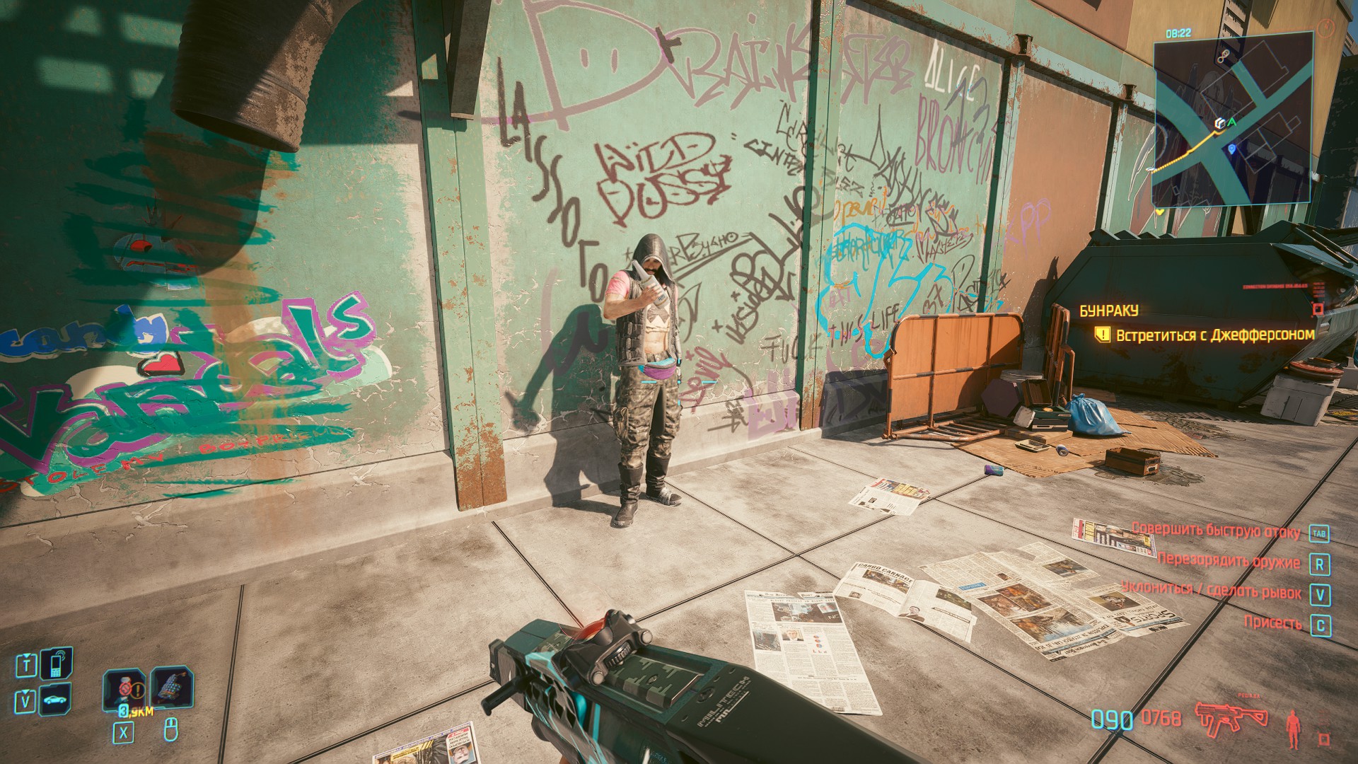Во первых она красива и оптимизирована сейчас, лучи великолепны, физика и разрушаемость улучшены. Как (частично) правдоподобно царапается и разваливается частями автомобиль, это прекрасно. Движения ботов, персонажа, всяких мелких элементов, заграждений, все прилично. Но и как уже писал не без косяков конечно. Локальные тени глючат, причем часто просто не отображаются в потемках между тобою и источником света. Но на днях почитал посмотрел хорошие объяснения в инете как реализована и упрощена на камеру игрока работа данного упрощенного варианта сейчас в играх лучевого освещения, и многое становится понятно. Как и то, что более сложный вариант "трассировка пути" дает уже не только художественное, а более реальное освещение, когда слишком сильное неправильное затемнение в игре пропадает, игра становится в темных местах ярче, но и производительность пока что не для нынешнего поколения видеокарт. Дым квадратит. Стекло металл дерево поверхности сделаны великолепно, вода хуже. А вот мелкие элементы, нарисованы странно. Часть мелких элементов с многогранными углами, что в наше время расстраивает, можно списать на давность движка. Но в то же время в других местах города мелкие элементы, провода, стаканоподобные вещи, нарисованы без углов, более лучше, впечатление, что в разное время рисовались.