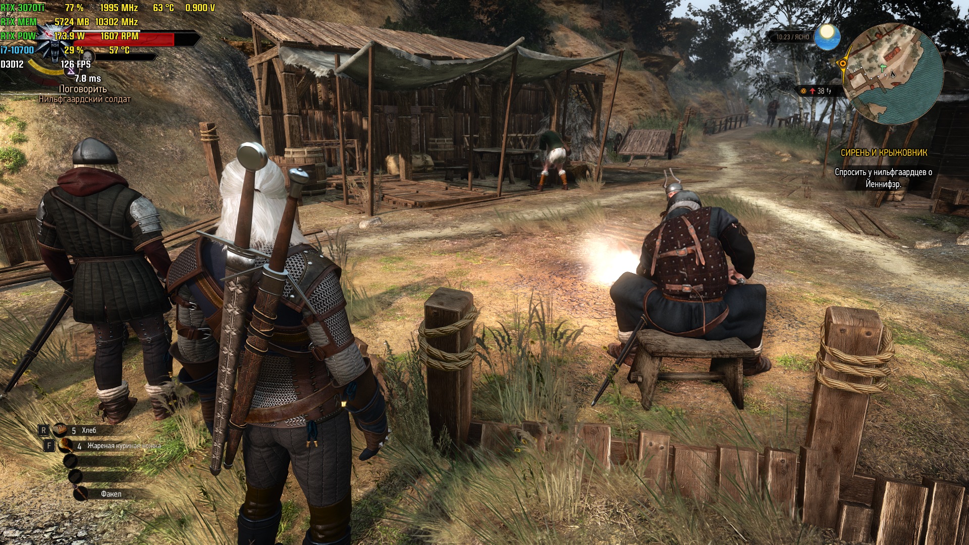 Побегал 5 минут я на своей системе в 2К разрешении, все на ультра, директХ 12, DLSS качество. 40ФПС. Это в Новиграде. Текстуры понравились, отражения тоже, солнце много. Заметил, что дальность отрисовки увеличилось. Я специально до этого патча скачивал игру и нашел одно место в Новиграде, на пристани, где видно на каком расстоянии пропадают часть балок причала. Сейчас же я отхожу дальше и не пропадает. По поводу производительности. Тут писали, что дерганая игра. Да, я тоже сначала заметил, что не комфортно играть было. Но потом полез в настройки игры - экран. Увидел, что по умолчанию стоит оконный режим. Поставил полноэкранный и дергания заметно уменьшилось. ФПС столько же остался - 40 кадров, видеокарта на 99% молотит. Не знаю, что у кого там не догружено. На моей показывает все 99%. НО! Что странно. Подхожу я значит доске объявления, где квесты берутся. Открываю эту доску. ФПС такой же остается на уровне 40 кадров, а ГПУ загружено 99%. Вот тут очень странно...