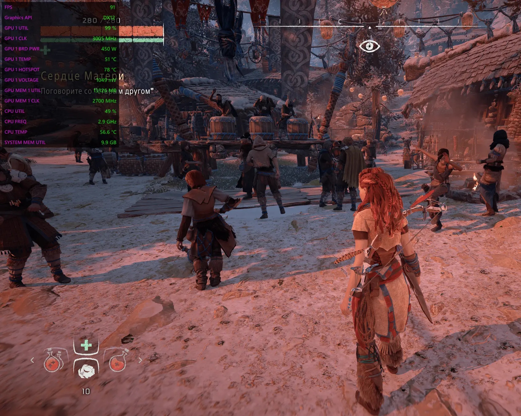 Самая первая деревня, в начале игры, когда Элой пригласили на праздник. Просто погуляй, посмотри на лица людей - красавцы. И взрослые, и дети. И сама деревня живая, эффект присутствия.