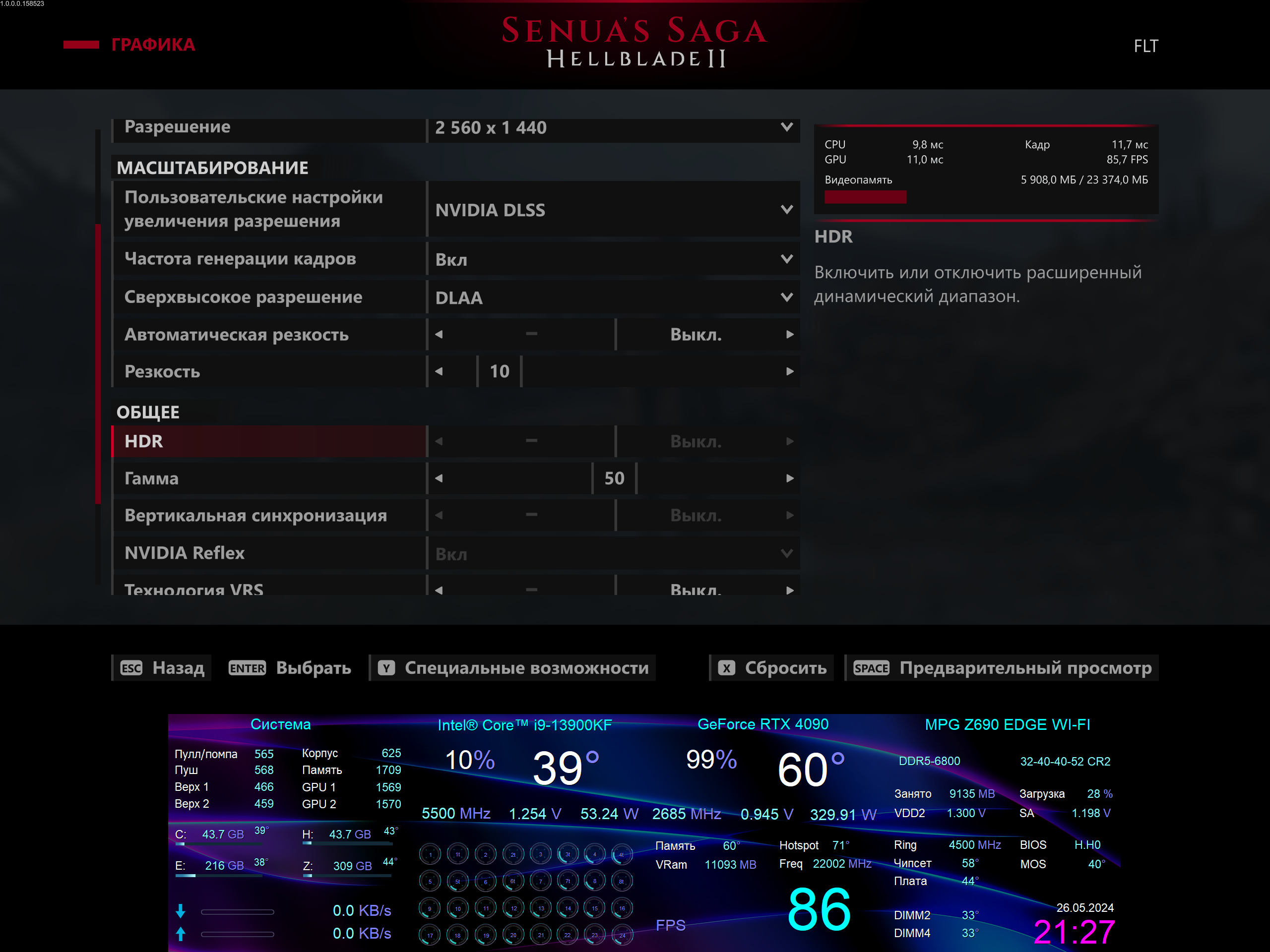 Там же и FOV фикс, делает угол обзора больше. Также нашёл для себя оптимальным DLSS DLAA, FG ON, резкость 10, при рывках мышки трава не мылится и не тускнеет, никакого перешарпа, картинка расчудесная))