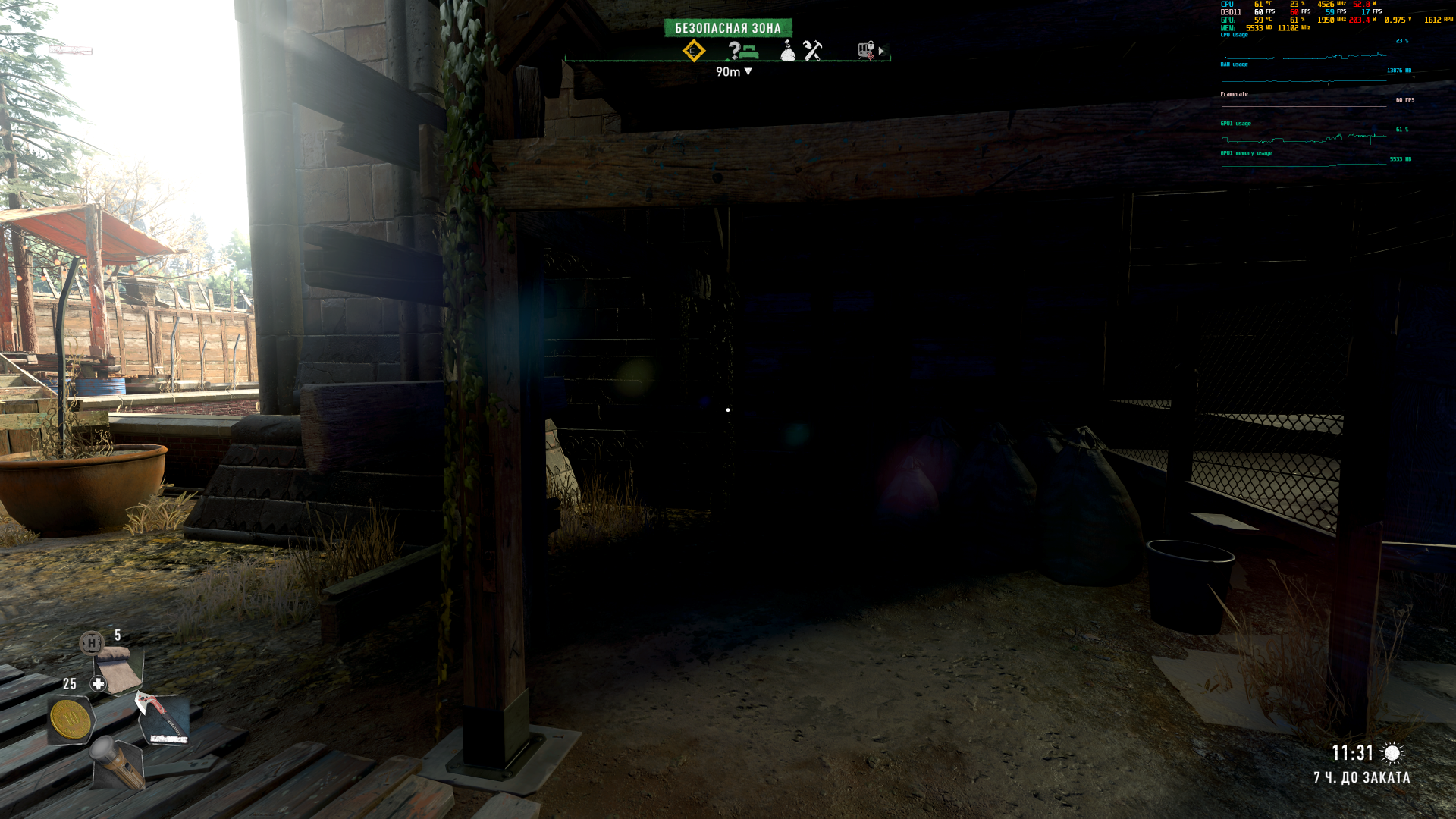 СМЕНА ДНЯ И НОЧИ Дождитесь ночи, чтобы наведаться в мрачные логова зараженных. Свет солнца разгоняет тварей по норам, но с закатом чудовища покидают свои укрытия и выходят на охоту.