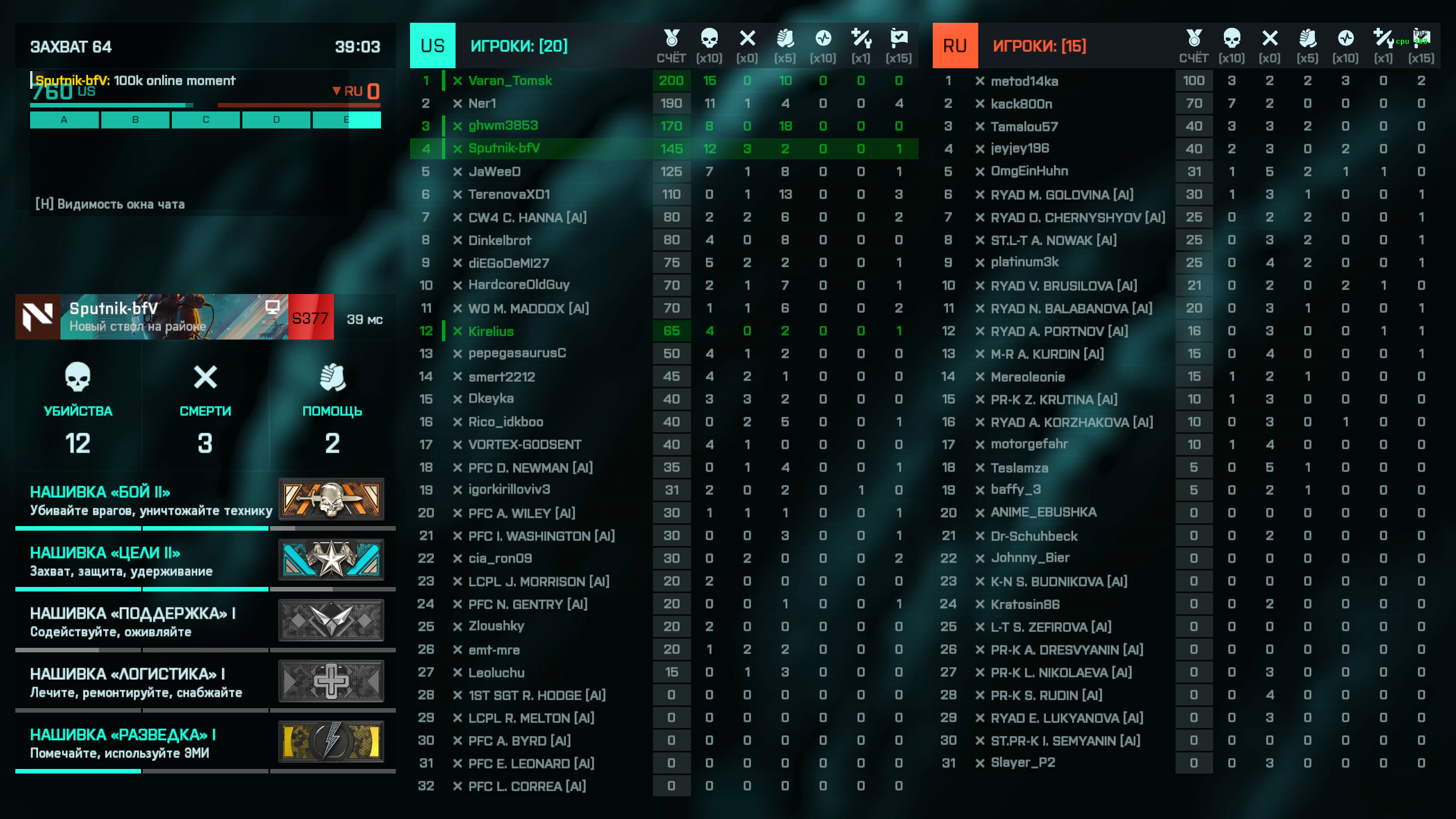 Если бы всех всегда кидало в новые катки, то можно было бы допустить увеличенное время ожидания. Также от обратного: если всех кидает в уже идущие катки, то время ожидания должно быть минимальным. А что видим мы: увеличенное до 1,5-2 минут время ожидания, после чего тебя часто кидает в слитую катку за команду с 0 тикетами. То есть за все 1,5-2 минуты поиска, из всех 100к онлайна ,ни один человек не вышел из игры, и ни одно новое лобби не появилось? Нет, так не бывает ,я видел как выглядят 100к. Поиск 4 секунды и почти всегда новое лобби, начало раунда.