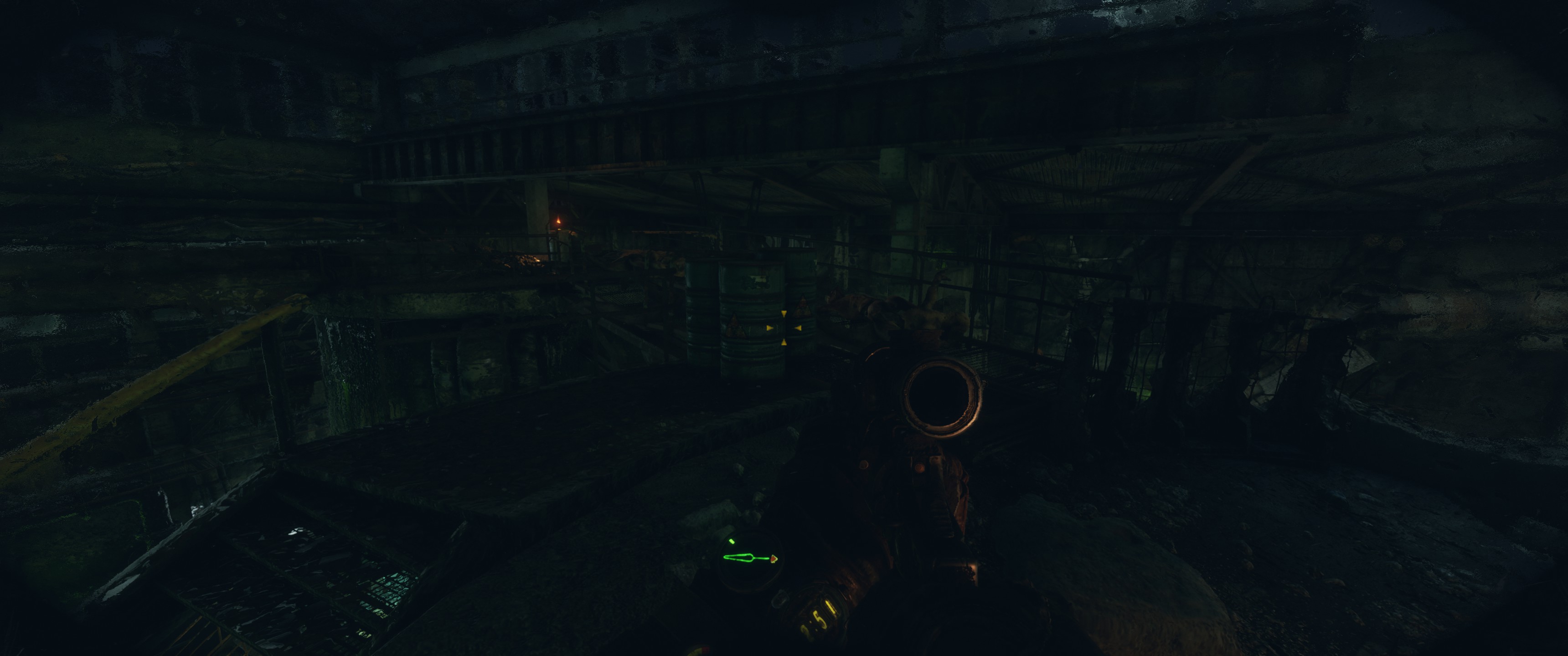 Блин, щас заметил какой-то косяк с яркостью. Там где за вагонеткой идём, депо что ли или типа того. Тёмного помещение. В общем, прям явная пелена на экране как в ре2 ремейке. Но в ре2 у всех такая была (на стримах, ютубе проверял), а тут нашёл прохождение чувака, там нет пелены. А самое главное, когда снимаю противогаз, цвета сначала нормальные без всякой пелены, но через секунду появляется она( Я эту хрень ещё на калибровке гаммы заметил, даже на самом низком значении левый знак отлично виден, т.е. явно пересвечено изображение. До этого момента не особо заметно было, а сейчас прям бросилось в глаза. Что это за может быть? Как будто какая-то помойная настройка... Вот на скрине наверно видно будет: