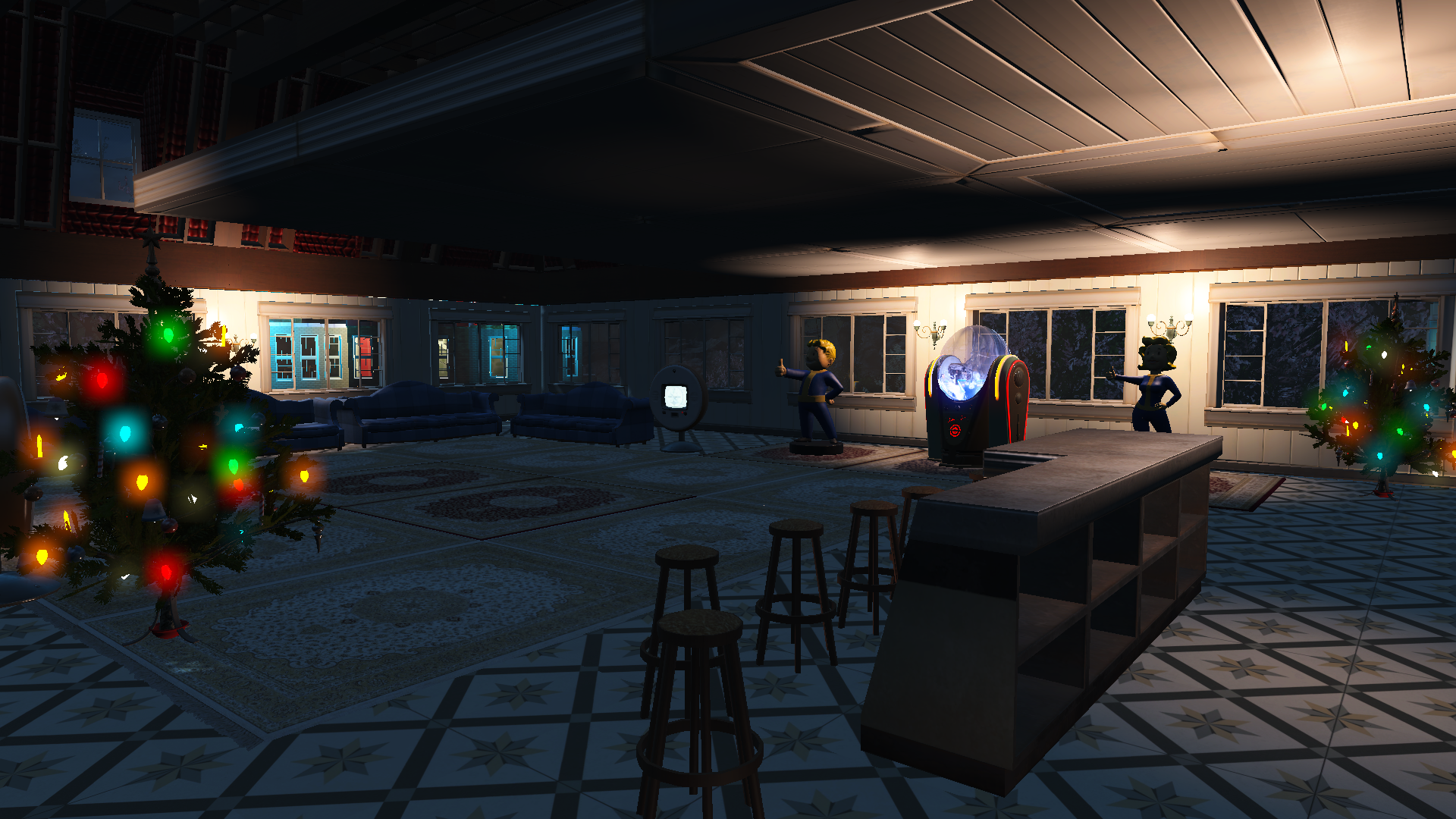 Еще как можно Ставим "FO4 Seasons", зимний вариант, втыкаем на улицу елку в ближайший сугроб и водим хороводы )) Сейчас у меня стоит весна.