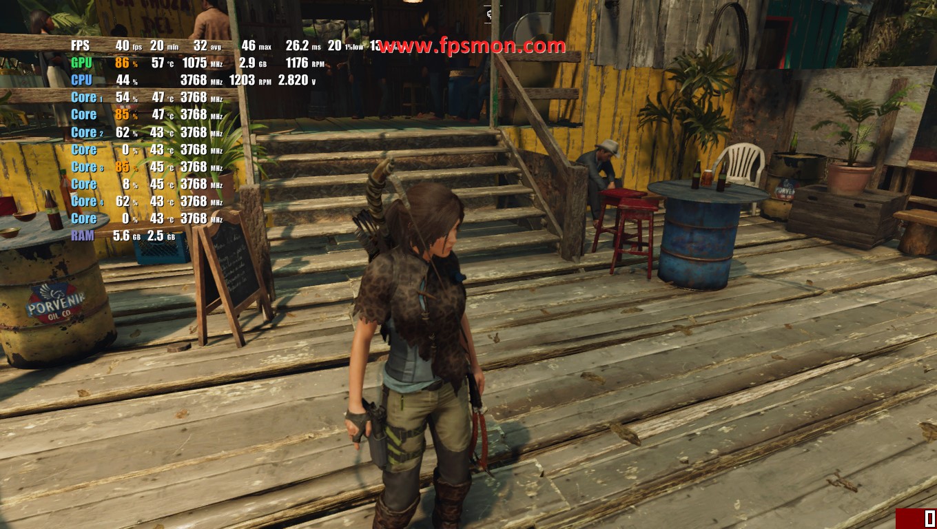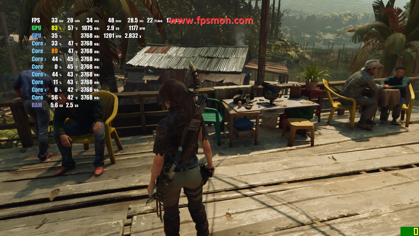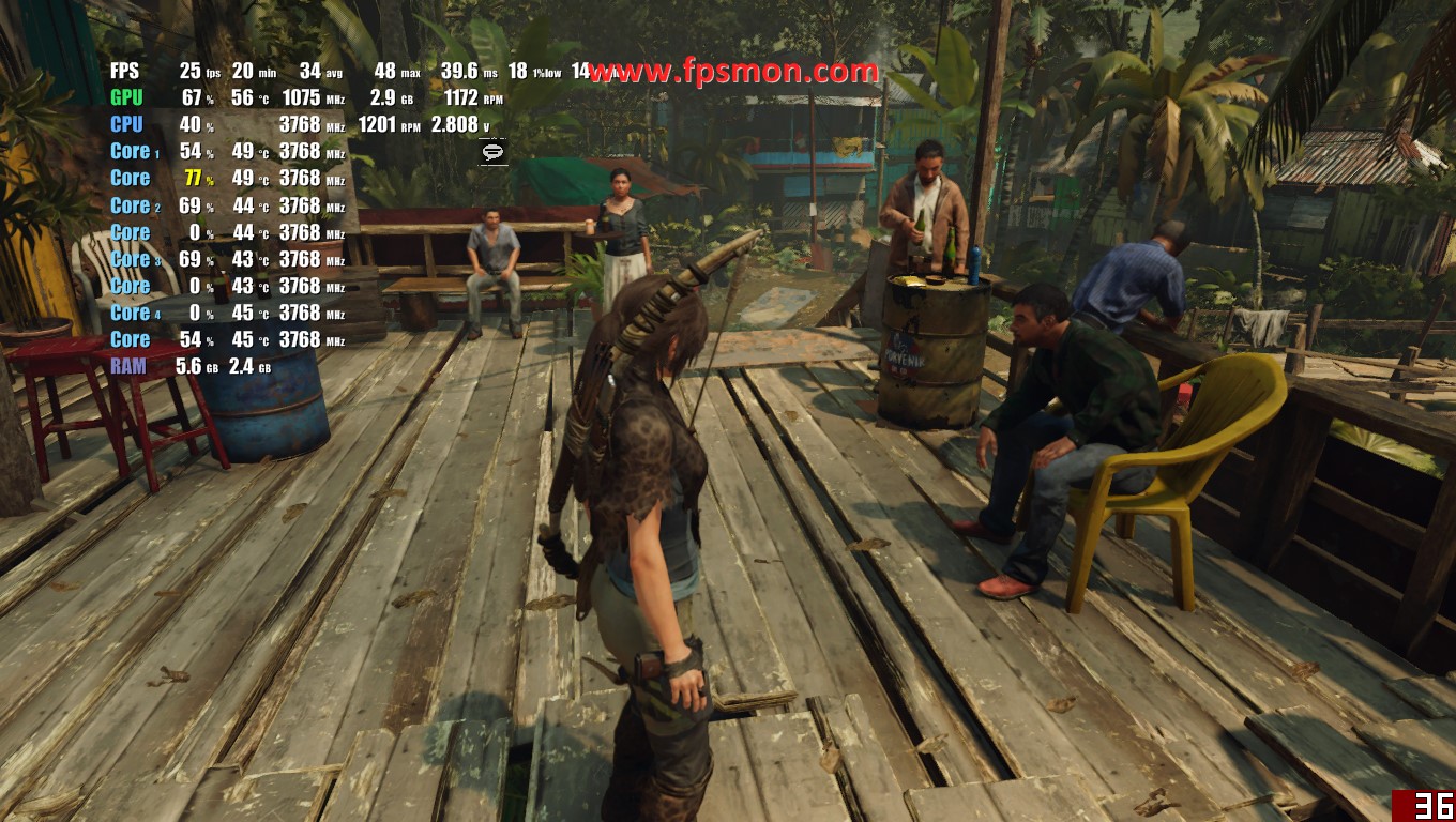 мда отключение в ноль пункта теней стабилизирует фпс до 35 кадров, включение теней на мин дает 21 кадр, на сред и высоко 25 кадр, на ультра 27-29 кадров - что за фыгня