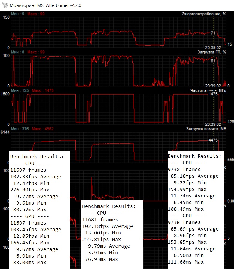 График показывает только мин и макс значение.И он начинает мониторить сразу..в заставках, меню етс..