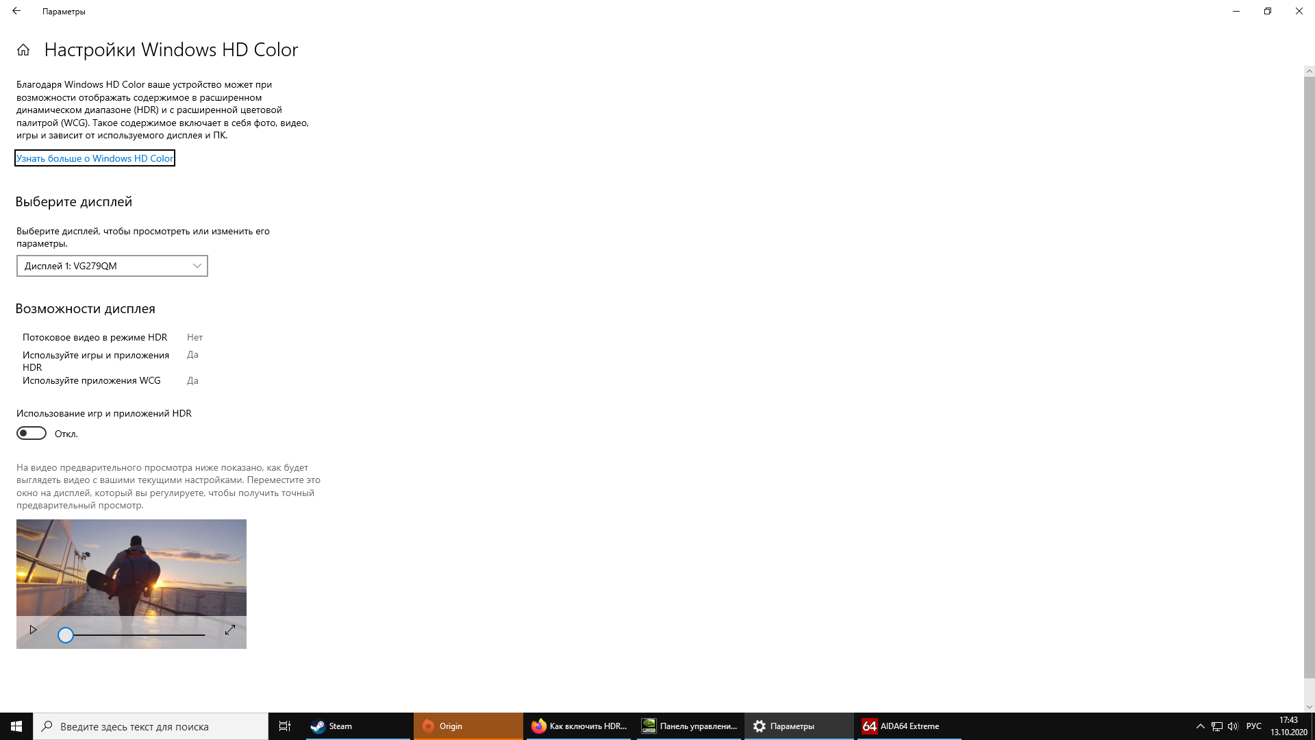 Я не могу отключить HDR на мониторе ASUS TUF Gaming VG279QM В 10 ке все убираю, при старте бытлы, все равно он появляется. Разобрался, в самой игре отключается-)