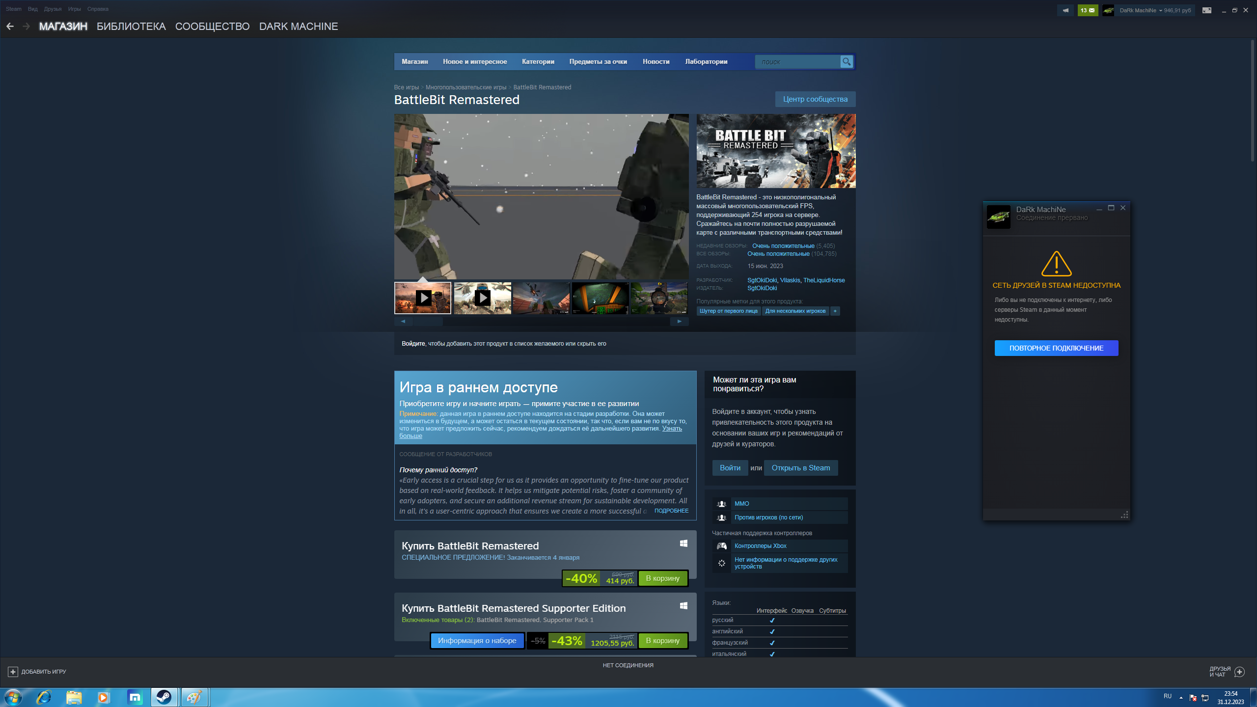 Вот так выглядит в данный момент Steam на Windows 7 Стим заходит, но друзья не работают. Игры не запускается, сообщение выходит что я оффлайн. Хотя сам магазин работает