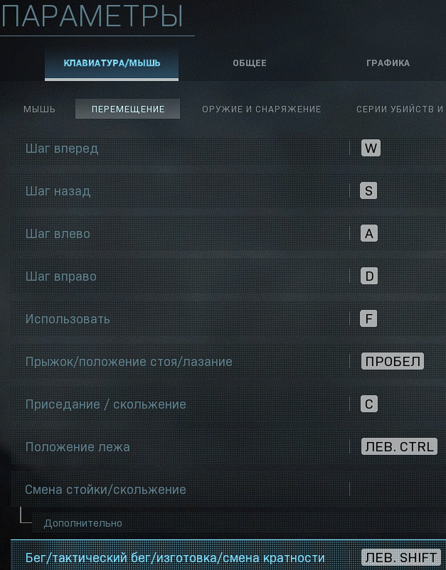 xBeast, Короче, если бы не менял настройки клавы, то левый Shift+W=бег, а нажатие правой кнопки мыши+левый Shift=смена гибридного прицела, но конечно при условии что сам гибпидный прицел установлен на оружии. Так как играешь на курсорных, то я не знаю как дотягиваться легко до левого шифта... а CTRL ведь занят в игре тоже. Вообще чтобы не менять никогда и нигде дефолтные настройки и при этом делать как удобно, покупают Razer Tartarus и радуются удобству. На скрине внизу пункт нужный вам, подсвечен: