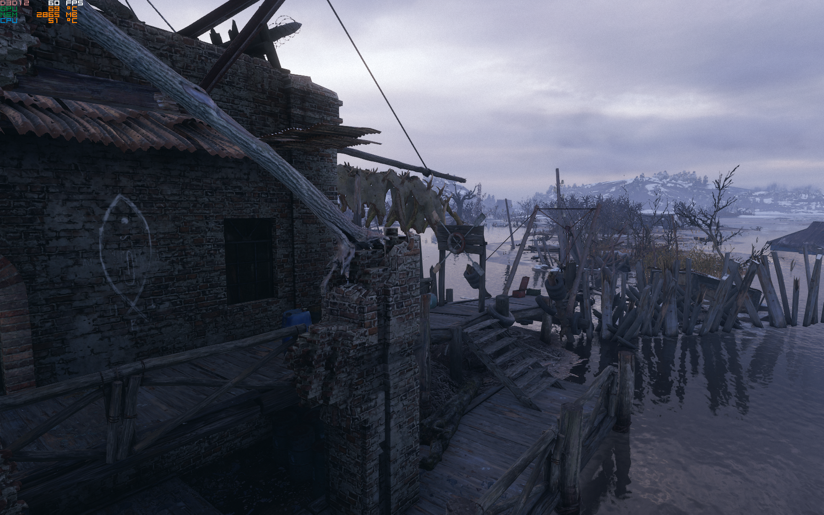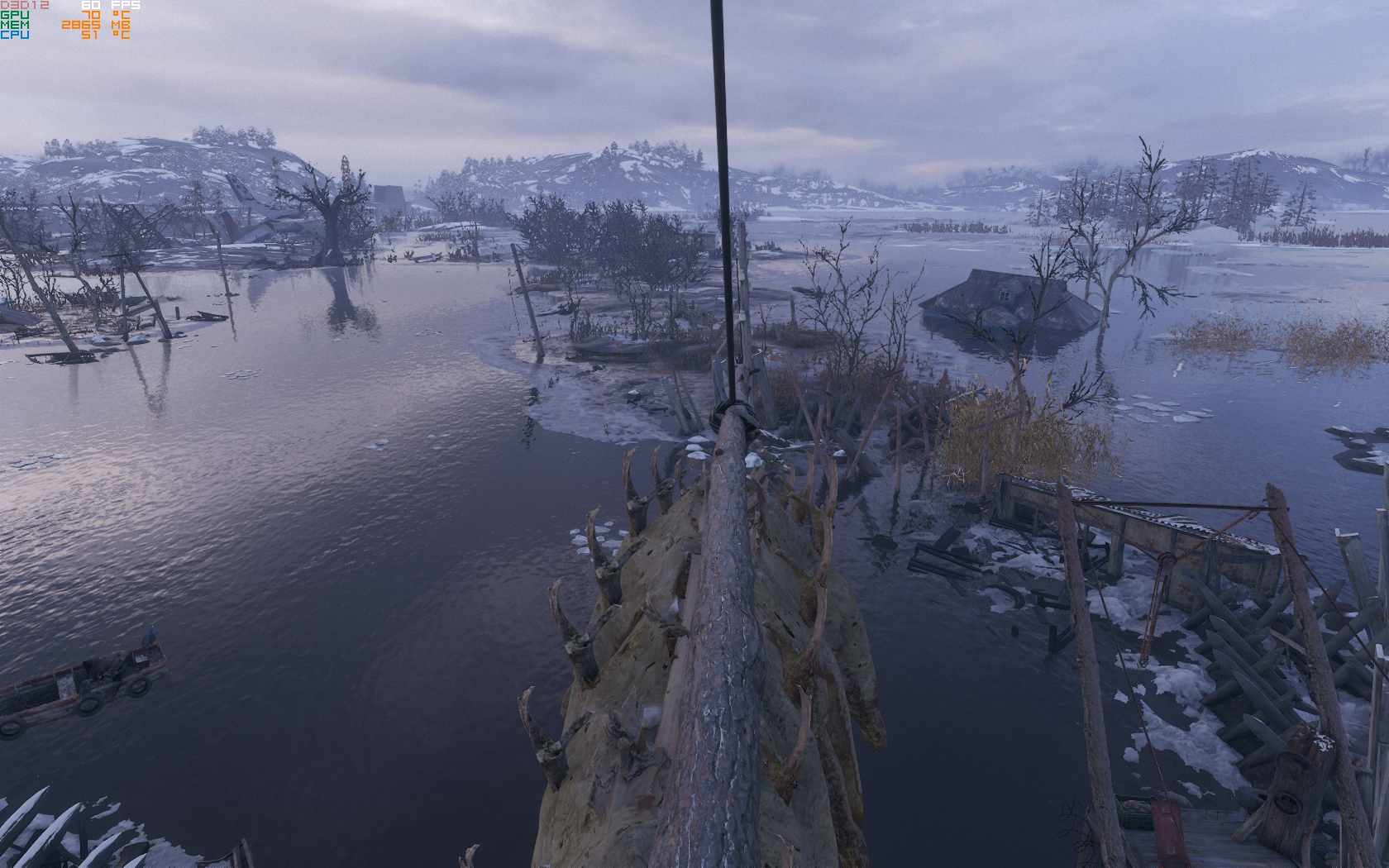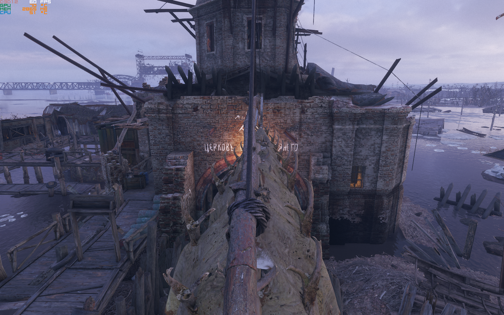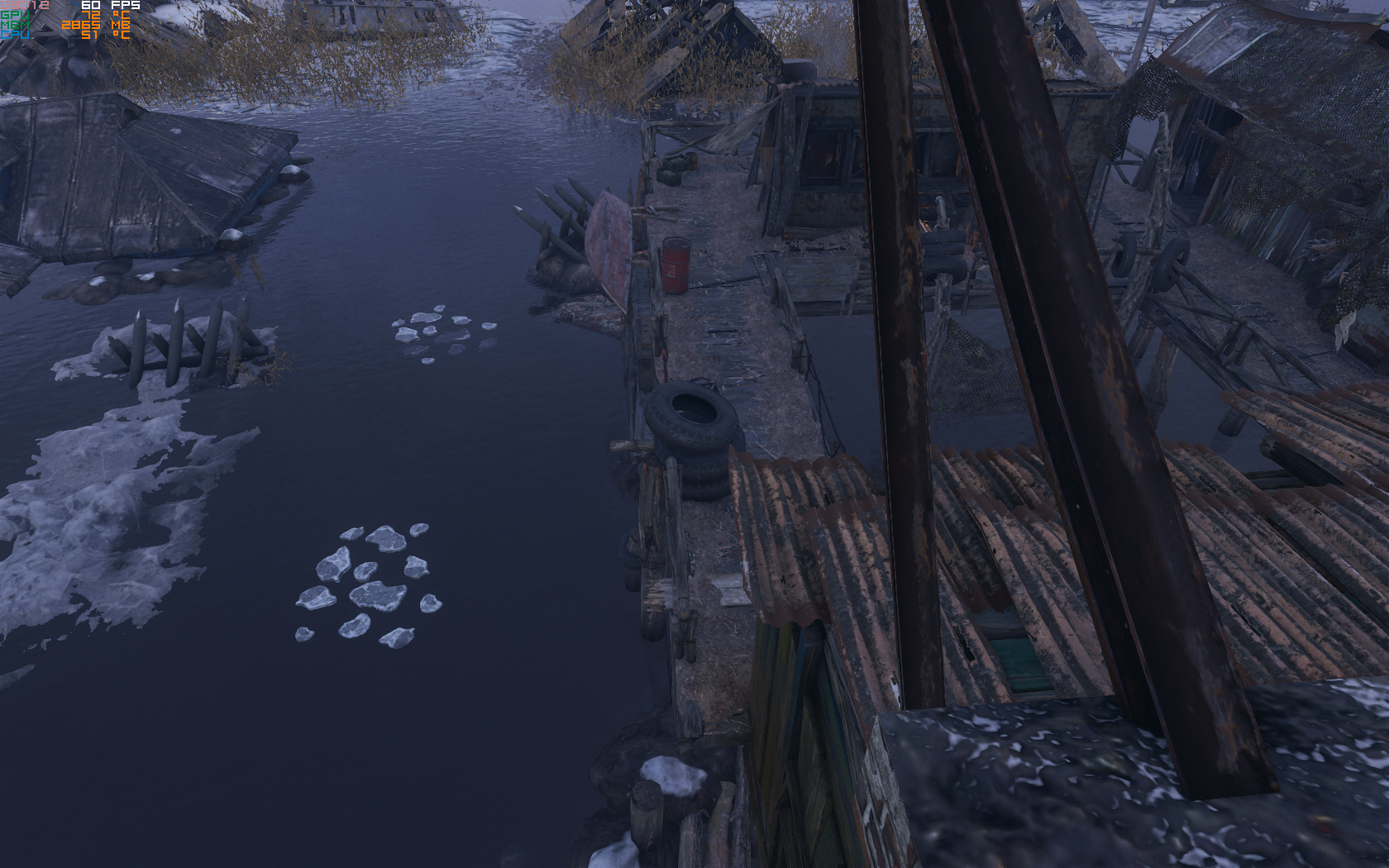 Как найти два бага в одном месте - или немного руфинга на Волге После прохождения эпизода в церкви, захотел туда ещё раз попасть, но уже не получалось. В итоге выпал из лодки справа от входа - а всплыл уже непосредственно внутри)) побегал, собрал хабар - решил вылезать, а не тут-то было. Зайти нельзя - и выйти тоже, у выхода на причал невидимая стена. Пришлось импровизировать. В попытке перепрыгнуть эту невидимую стену - удалось запрыгнуть на невидимую крышу)) Идём вот сюда, залезаем на покрышки, и вперед по заборчику до самого его конца