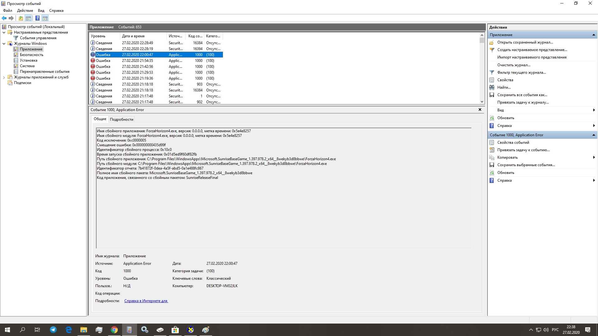 привет всем, имел значит неосторожность купить форзу делюкс с недели 2 назад(игра конечно топ! ничто и рядом не стоит), в итоге за 2 недели начал в компе разбираться снова как в свои школьные годы, 3 раза переустановил винду, а от вылетов всё равно ничего не помогает(убийство проводника, батники, обновление драйверов всё это уже прошел) вылетает минут через 10-15 после запуска, может кто тут чем поделиться? на всякий прилагаю скрины системы и ошибки в журнале