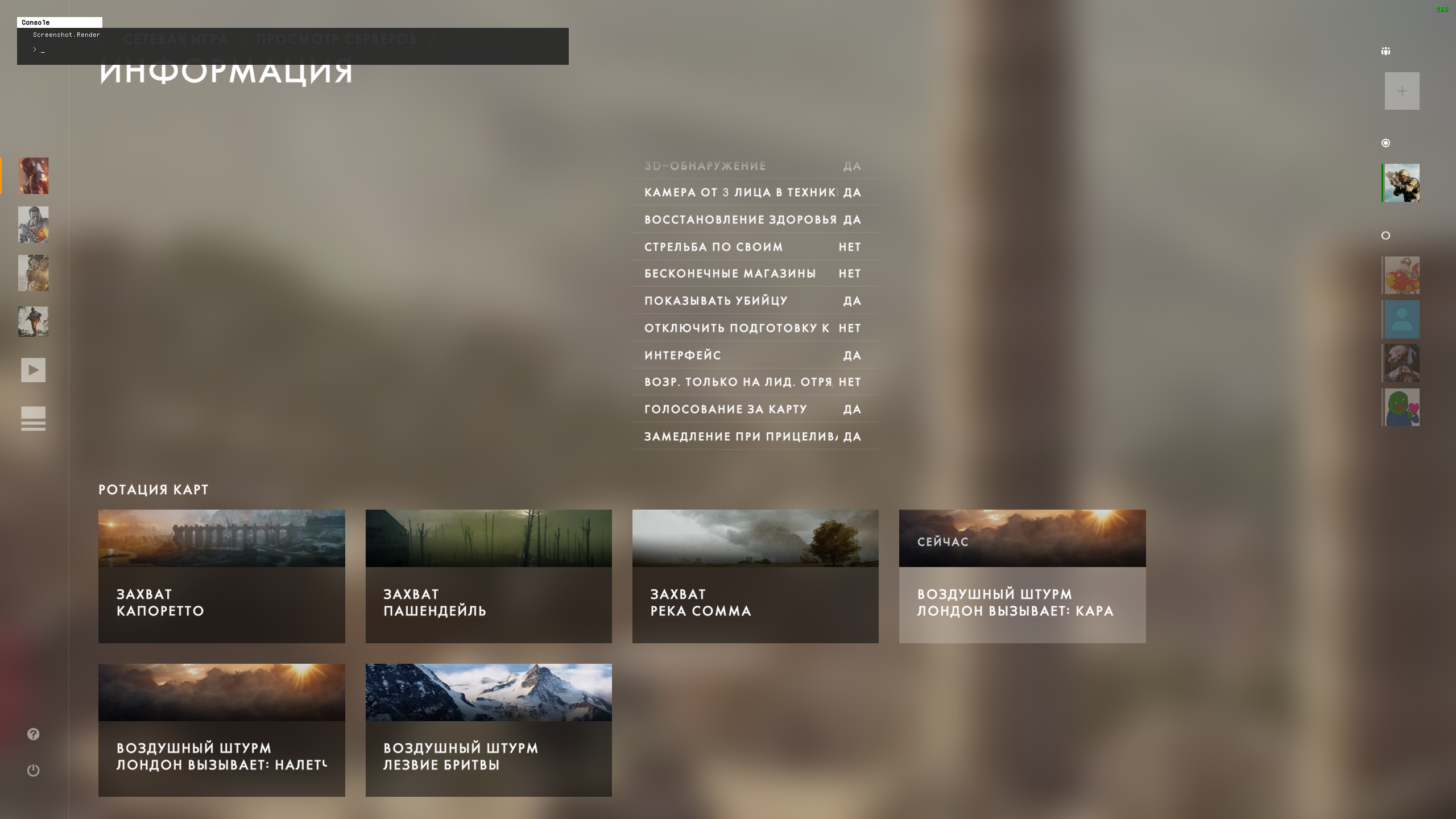*Показ отладочной информации, в том числе о текущем разрешении рендера (Internal: X)Нажать ~ (т.е. открыть консоль) и ввести Render.DrawScreenInfo 1 - * У кого мерцает меню(не sli), - включите в настройках не полный экран, а оконный без рамок, должно помочь *Родное разрешение рендеринга (1 к 1) это Resolution Scale выставленный на 100%.