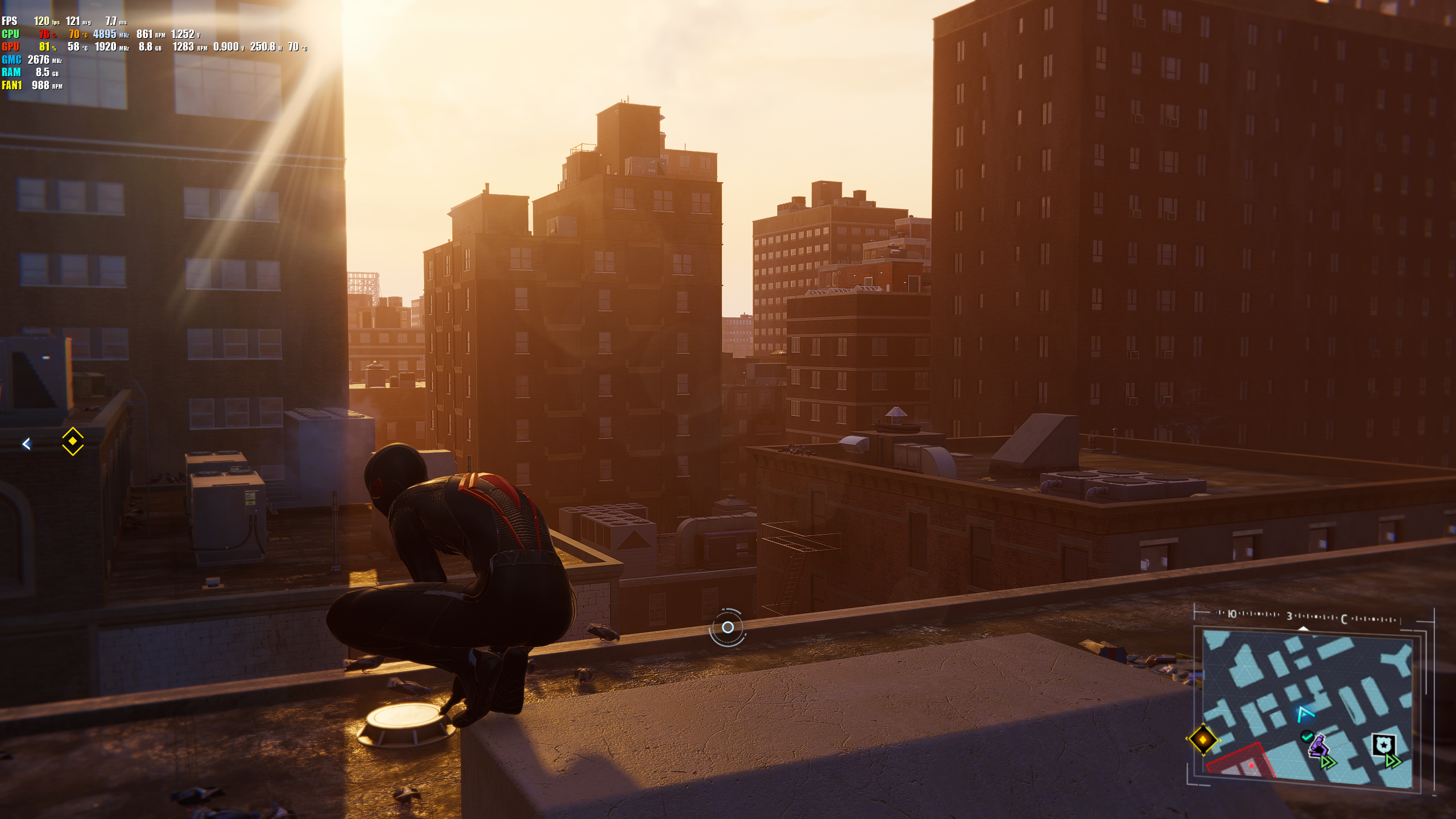 Вертикальную синх. в играх всегда выключаю. У меня монитор 165гц с аппаратным g-sync. Может и проц. не вывозит, хотя очень странно, в том же DL2 на ультрах с лучами и dlss качество гпу всегда на 99-100% нагружен был, 100 фпс среднего, да и графон в dl2 куда круче чем в пауке. Вобще про паука читал много отзывов на др. форумах, почти все жалуются на просадку фпс и утечку памяти, есть предположение, что просто кривой кряк или оптимизация такая у игры. В некоторых моментах в пауке бывает и до 150фпс доходит, но это только в помещениях.