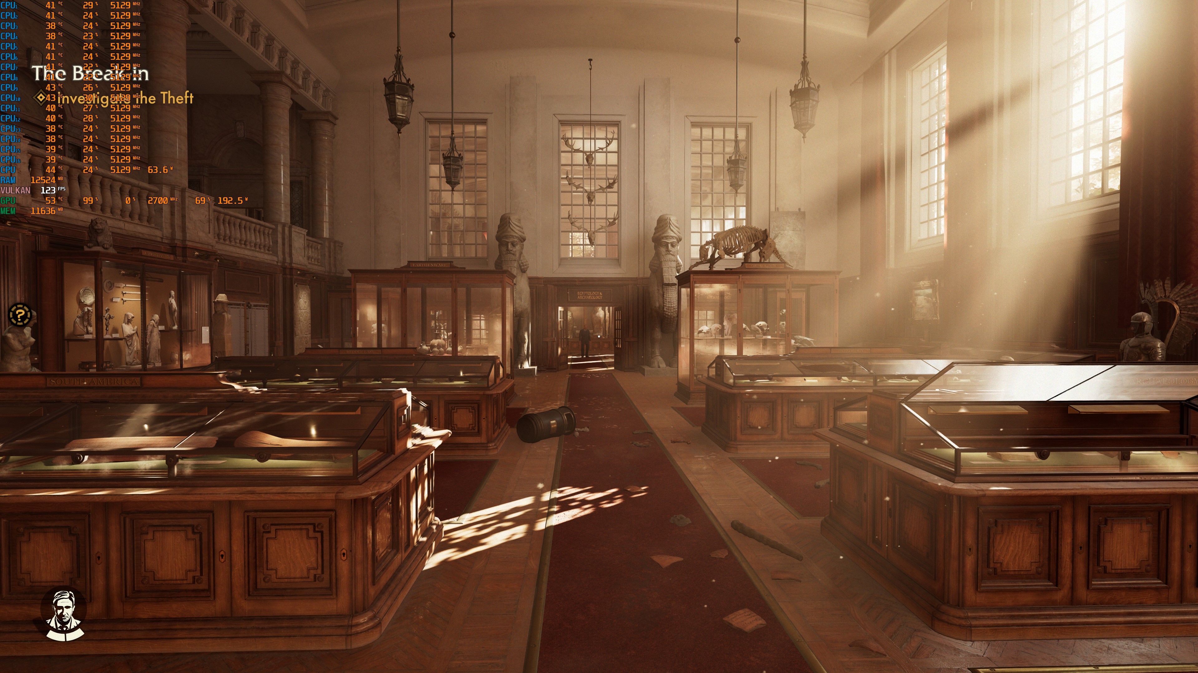 у тебя в музее, на втором скрине с Маркусом, тоже тени от окон (решётки) прорисовываются при приближении? И зачем включать DLSS, твоя видюха 60 фпс не выдаёт к 4К?