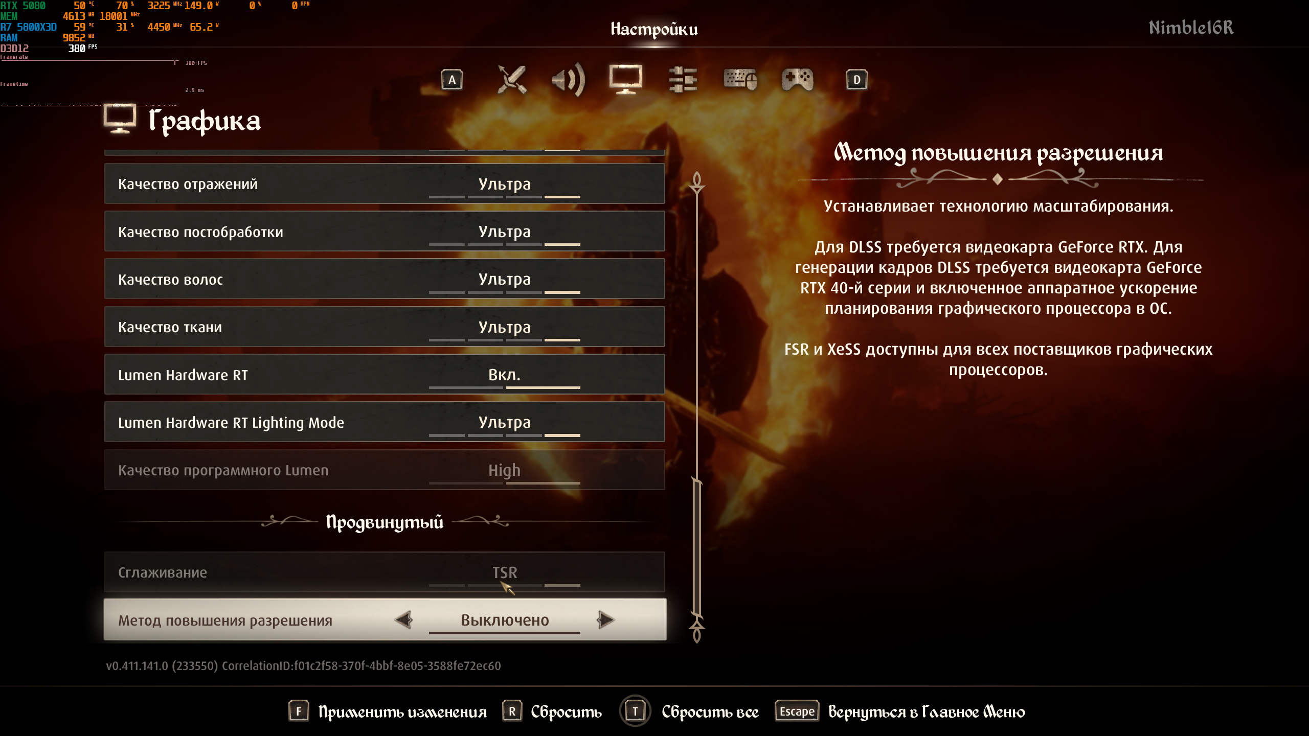 Короче надо ставить Hardware Lumen Medium и вырубать SSR и тогда будет наилучшая картинка. Настройки все на ультра кроме теней они на высоких.