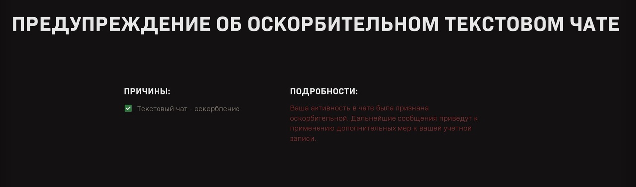 Так вот это и нарушает их же правила, мне вот неприятно читать такие предупреждения от разработчика игр у которого я эту игру и купил. Может меня ранят вот эти их беспочвенные обвинения, на слово поверили другому игроку и обвинили меня, круто а как же любовь по отношению ко мне