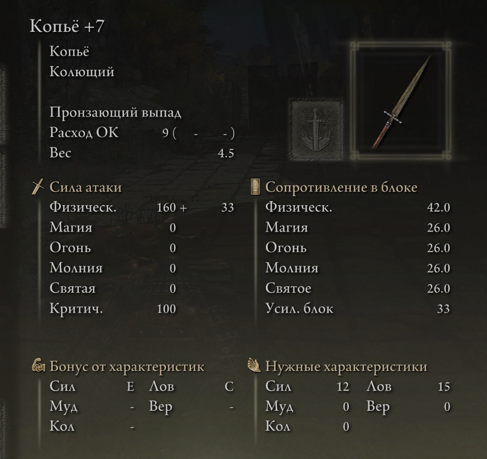 В самом начале игры, на 20+ лвл, можно убить Лоскутика и получить с него вот такое имбовое копьё, на начальном уровне это конечно ТОП, сразу +7 заточки.