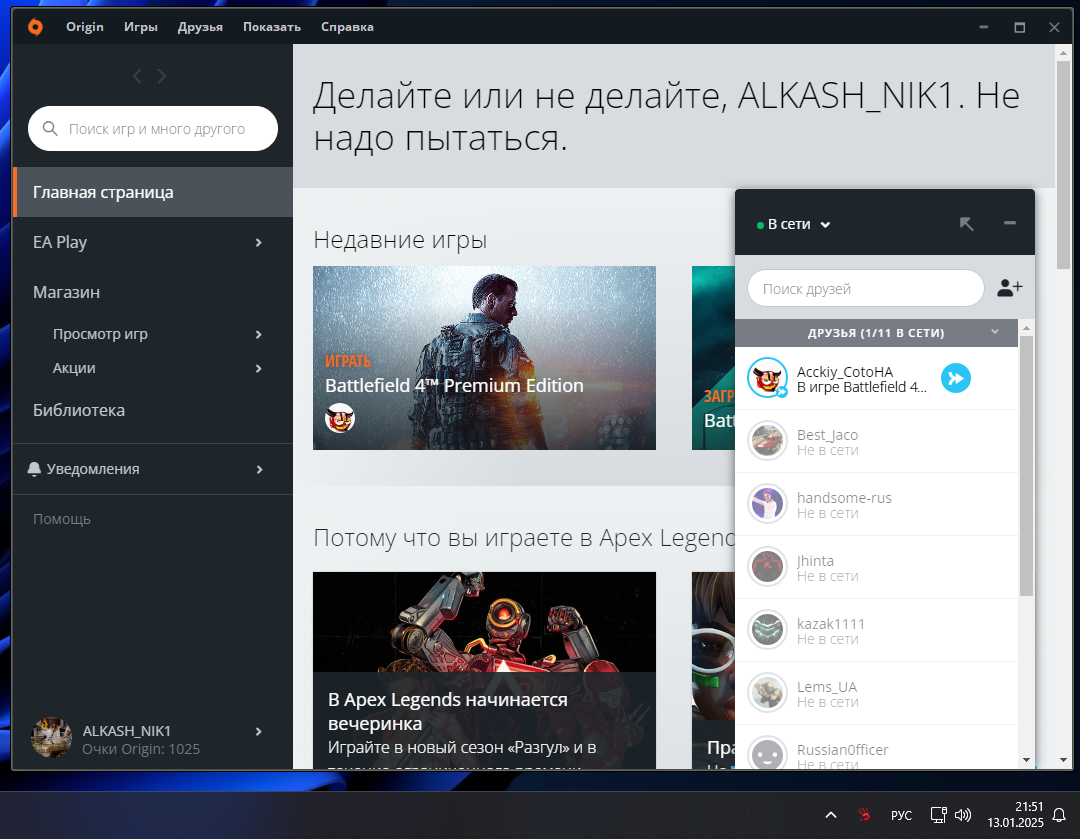 Да, вот теперь и у меня чё-то такое же, утром был последний нормальный вход. Переустанавливать не надо, кстати.. Достаточно или полностью или частично подчистить данные во всяких AppData. Но на всякий случай замечу, у меня щас люто подтупливают разные сетевые сервисы: голос в стиме, псевдоммошка. Мог бы и оригин на это списать, наверное.