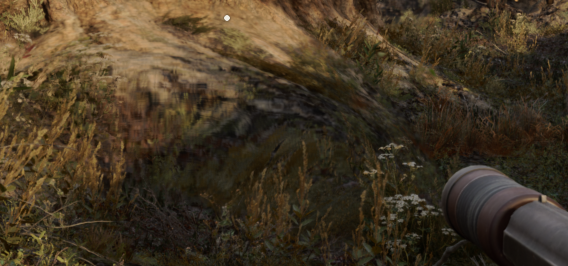 Графика в игре отличная, но реализация некоторых вещей просто ублюдская. Одно из них - это лужи натянутые на текстуры поверхности. Там нет воды. Просто текстура воды с отражением, ноль физики/следов/звука/разводов. Фонарь и его отражение в окнах тоже на коленке сделали.