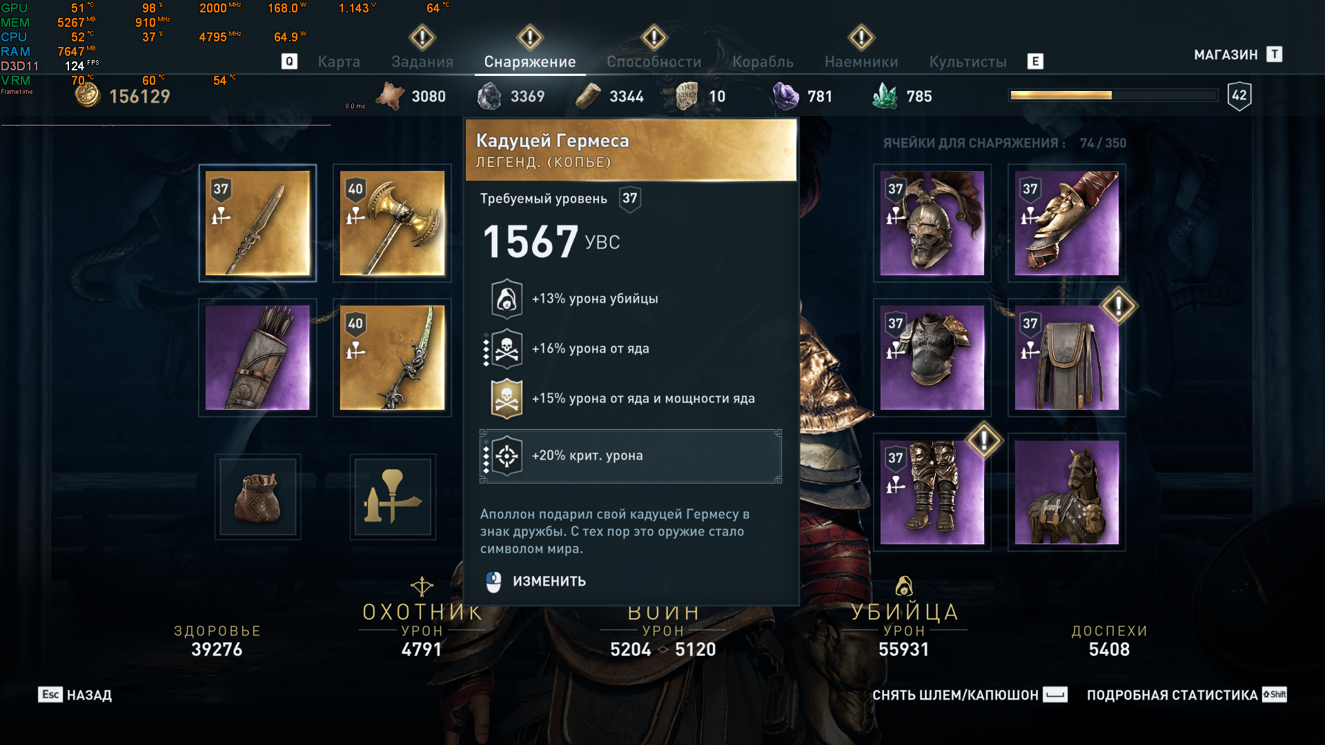 Я что-то пол игры бегал с дубиной/топором, ставил гравировку "урон огнем", а после видео (тут выкладывал парень, что на кошмаре прошел со всеми ачивками) я прозрел, что с топором/дубиной ты страшно медленный и очень часто юркий противник тебя доведет до смерти быстрее чем ты второй раз ударишь, решил тоже мечь взять, взял кажется мечь гермеса или как-то так (сейчас не помню) и гравировку "урон от огня" вот так уже уровней 20 и бегаю. Второе оружие - трезубец Посейдона, специально с собой ношу, но не пользуюсь, только ради дыхания под водой. wolfire Сейчас 76 уровня, вчера зачистил Илизий, скукота, но красиво, иногда прямо аж веет какой-то Ларой Крофт или Uncharted4, когда лазишь по развалинам, а там вообще никого и всё такое ветхое. Теперь по квестам иду. Колоссы вообще хрень, наемников и то сложнее выносить. Скажите, имеет смысл свою броню из основного сюжета качать (она сейчас 73 уровня) или же лучше подождать и что-то в Атлантиде крутое выпадет? Просто не хочется зря ресурсы потратить.
