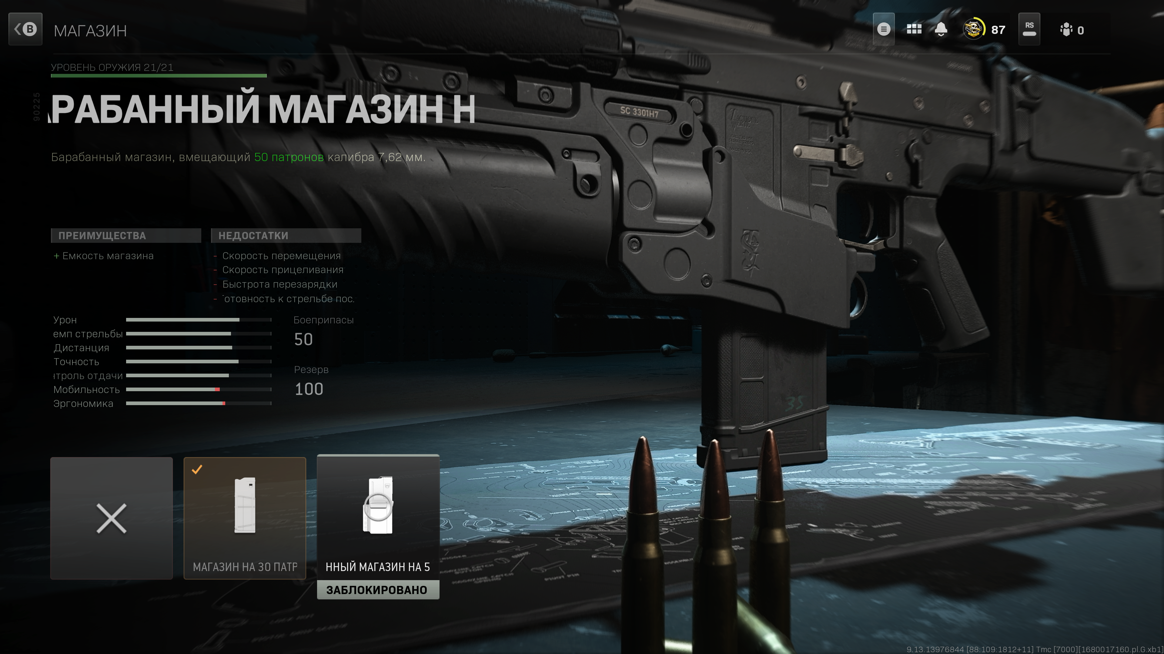 Разобрался с этим недоразумением, методом дедукции выяснилось, что барабан на 50 патронов несовместим с подстволом. Обычно предупреждает о несовместимости модулей и что с чем несовместимо, но тут, какому-то индусу проще было в носу поковырять, чем что-то написать про несовместимость.
