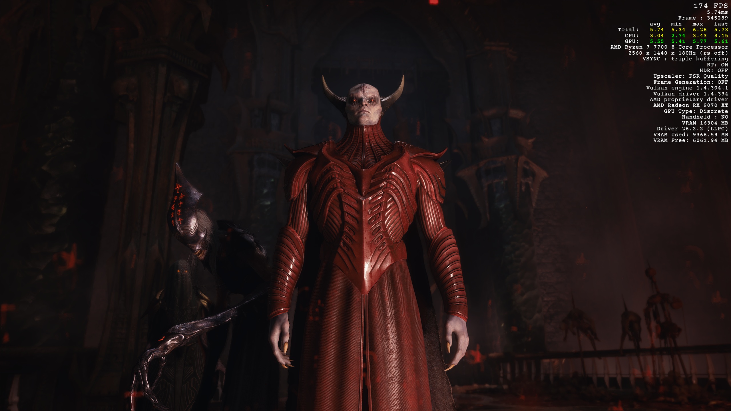 прогнал встроенный бенч. похоже ryzen 7700 не хватает для 9070xt в данной игре еще из странного бенч дуума написал что у меня винда 10 а не 11, и что озу в системе не 32 а 16