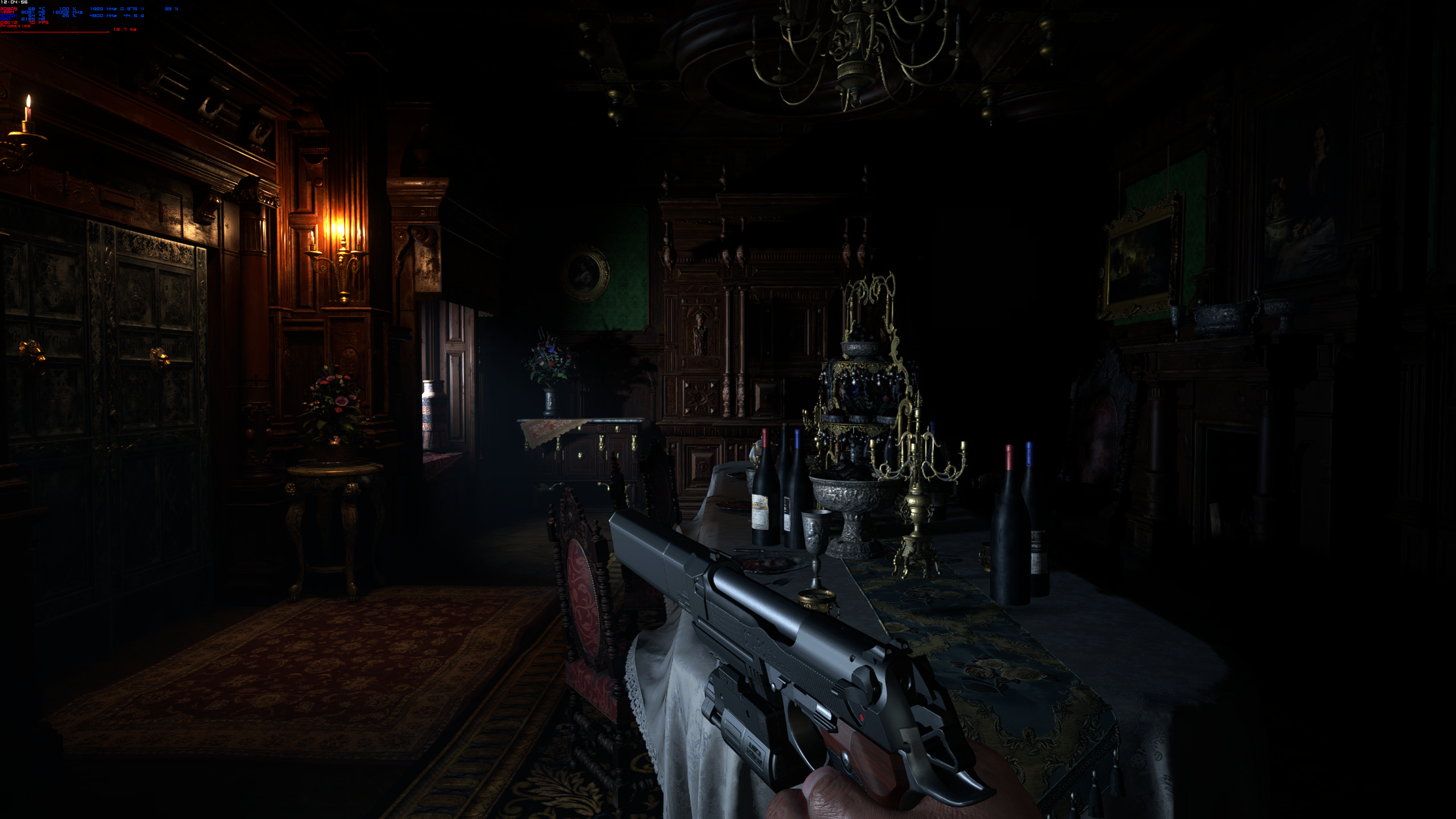 в том моменте, на котором висяк, идет обработка жидкости в кадре (Итан поливает свой обрубок из флакона). Если там стоит "автовыбор", то обработка физики может происходить на проце, а это серьезная нагрузка на него. Мне раз помогло убрать фризы в одной игре.