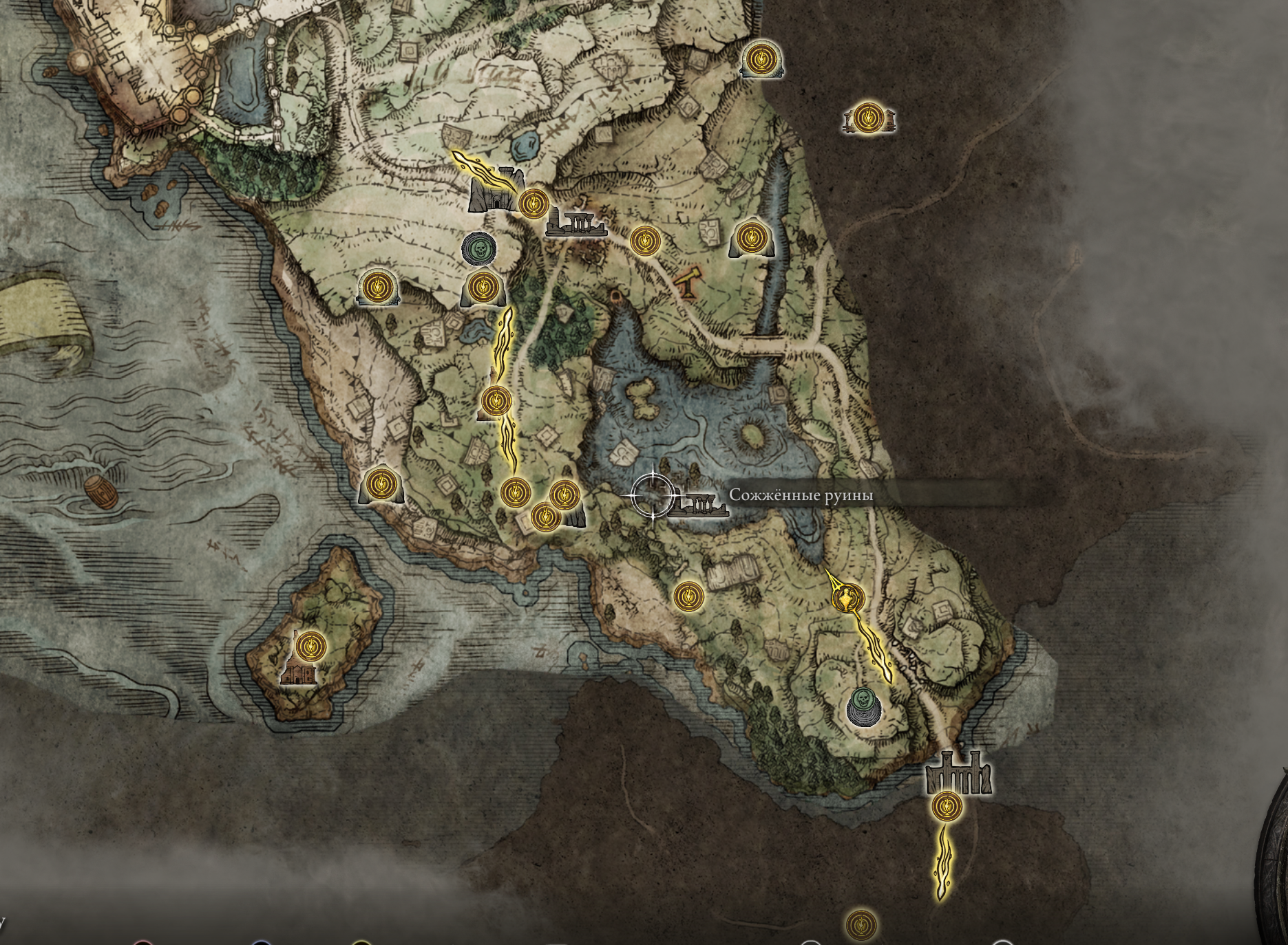 А, так так стрелочка в другую сторону уже идет, ее наверно надо после замка, так что скорее всего тот босс для более высокого уровня. Сначала надо по первым стрелочкам идти в замок. А там если соло не тянешь - призывать скрюченных пальцев.
