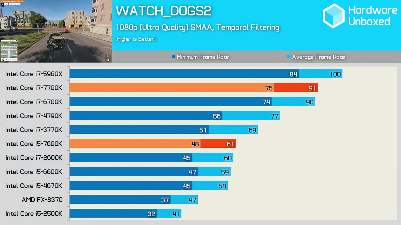 Вот так производительность процессоров в этой игре... и не понять что именно ей нужно, 8 поточный FX сливается любым i5 кроме Сандика, 8 поточный i7 2600к на уровне i5 последних поколений, что как бы намекает на плохую оптимизацию многопотока, но при этом 16 поточный 5960х всех разрывает... а 8 поточные Скайлейк и Кэби лейк разрывают Хасвеллы...