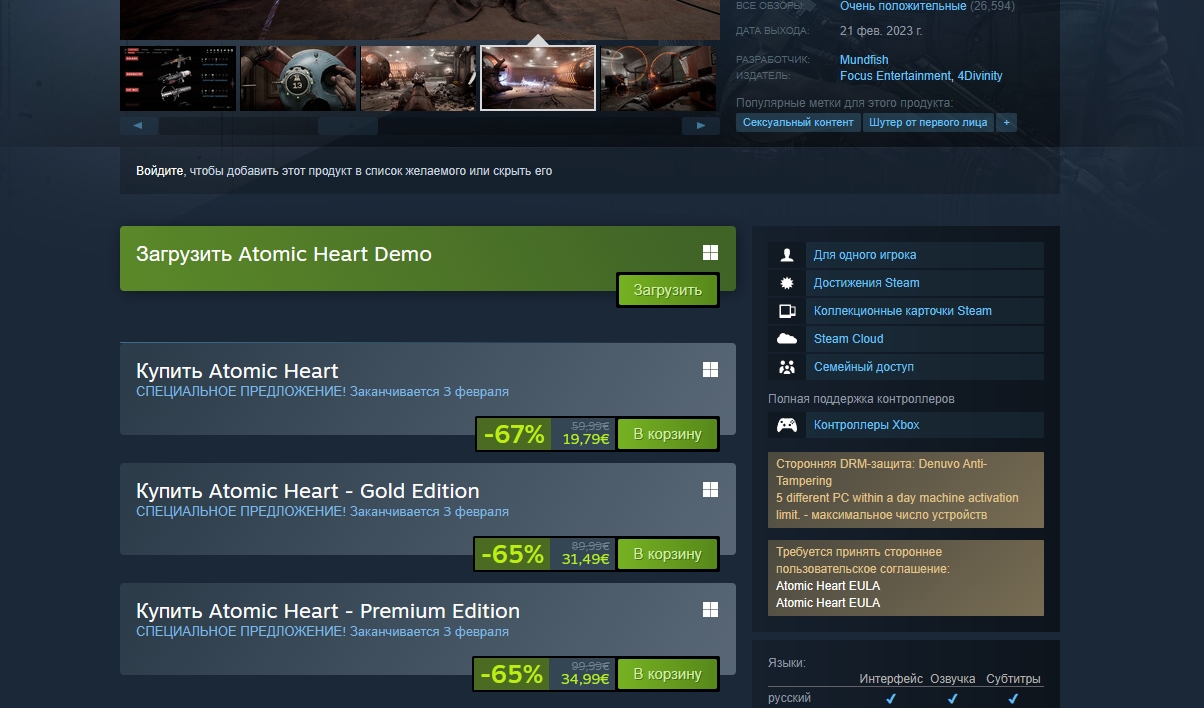 Как интересно. Заходишь в инет браузере или в Стим клиент (!) со статусом не в сети. Показывает Европу. Стоит в клиенте зайти в сеть, т.е. онлайн, и обновить страницу то сразу Недоступно. Если сунуть в корзину будучи не в сети, то игра остается, стоит перейти в онлайн, показывает что в корзине игра есть но там пусто. Или провайдер дурит, или Стим. VPN и т.п. отключено. Может попробовать в оффлайне пропихнуть на аккаунт